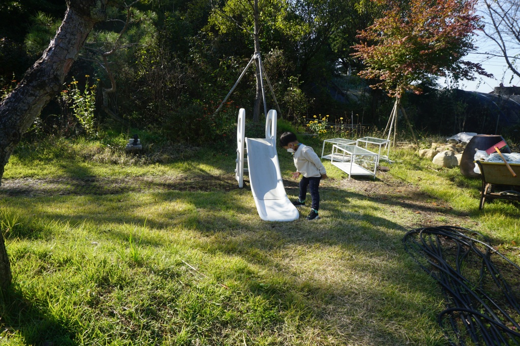그리고 뒷뜰 한켠에는 조그마한 미끄럼틀도 있어서 아이들이 놀기에도 좋았습니다.