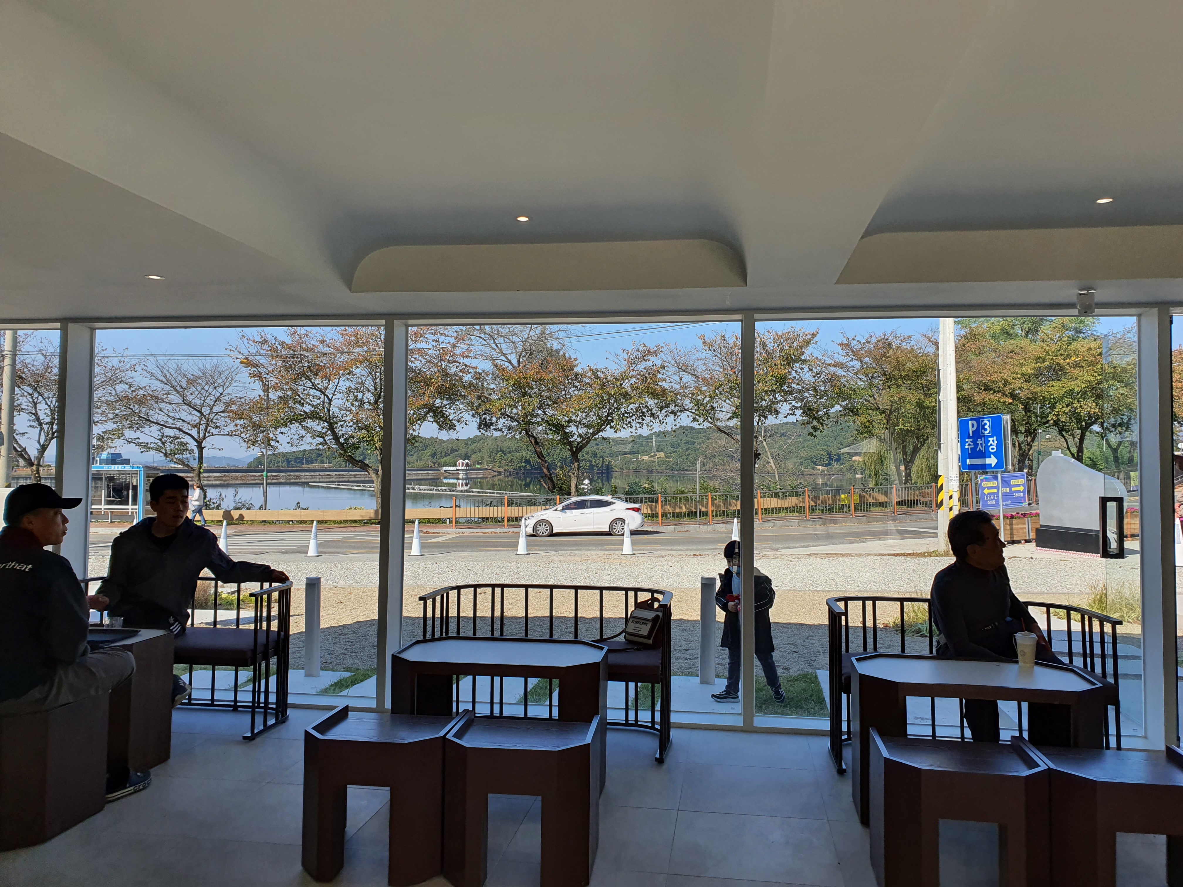 초서카페 옆에 바로 탑정호 순환버스 승강장 입니다. 뒤편 넓은 공터가 주차장이어서 주차가 매우 편리했습니다.