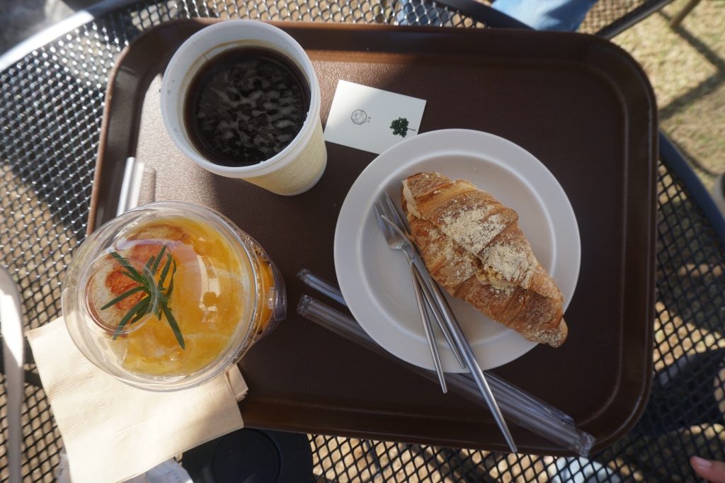우리는 인절미 크로와상과 기본 아메리카노 그리고 오렌지망고젤리 주스를 시켜보았습니다.
