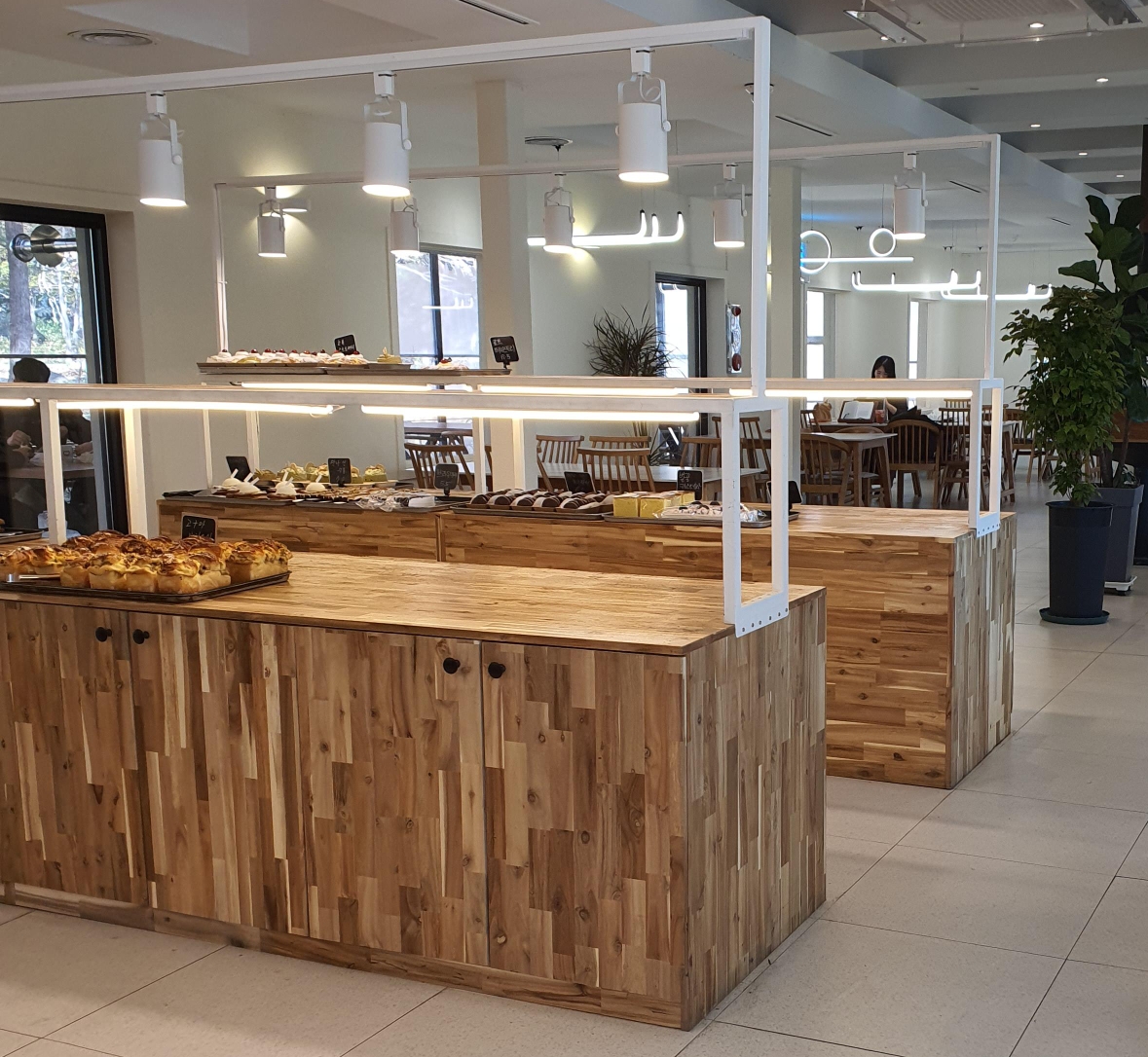 빵 진열대 뒤편에는 먹을 수 있는 테이블이 있고