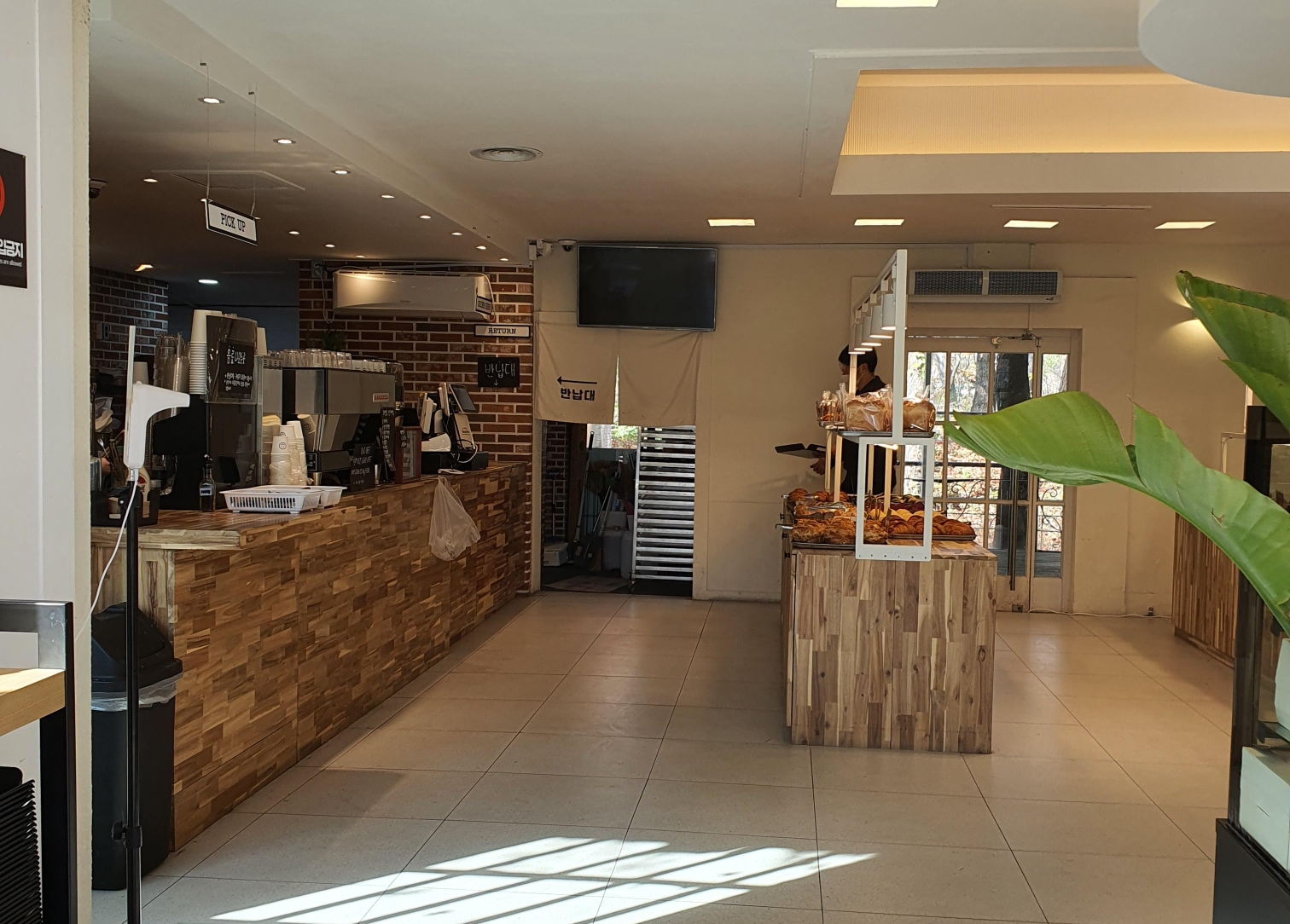 체크인을 하고 들어서면 정면에는 커피를 주문하고 계산하는 카운터가 있고 우측에는 빵을 파는 빵진열대도 있습니다.