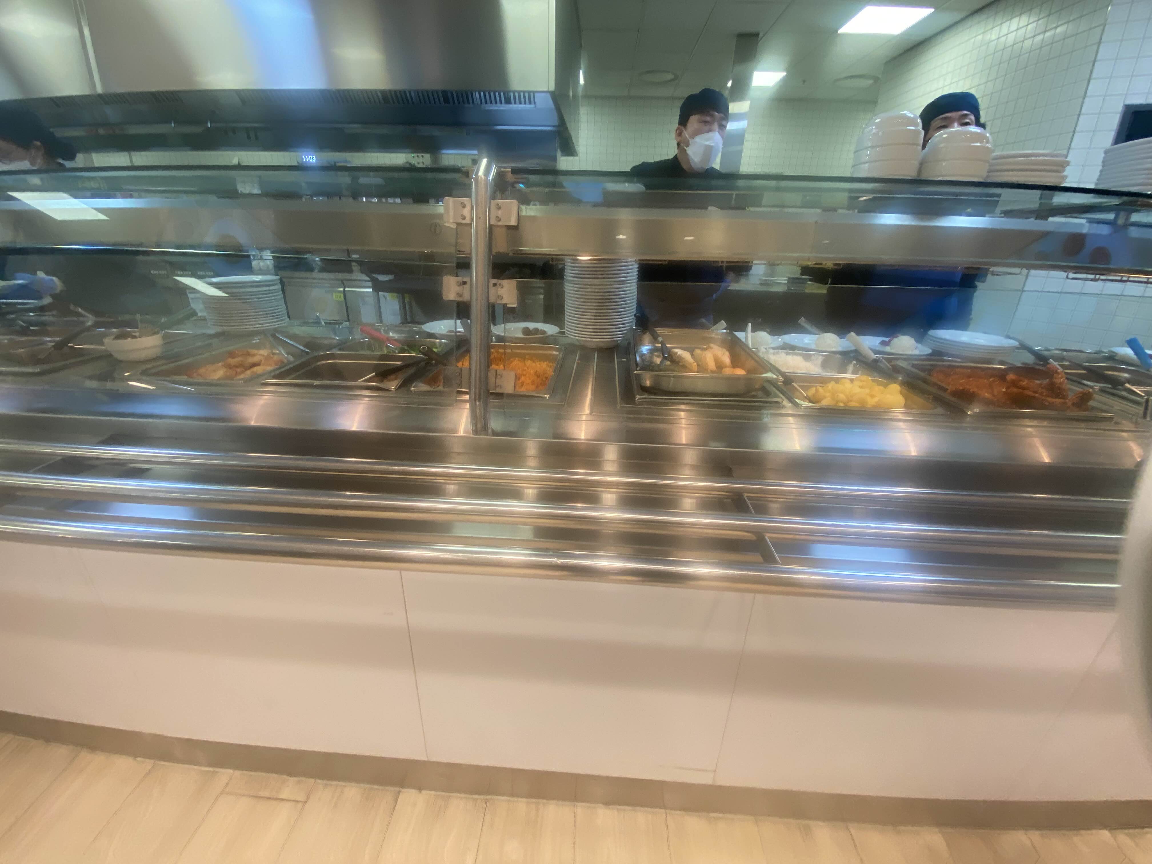 음식대 뒤에 있는 조리사 분들께 원하는 것을 말하면