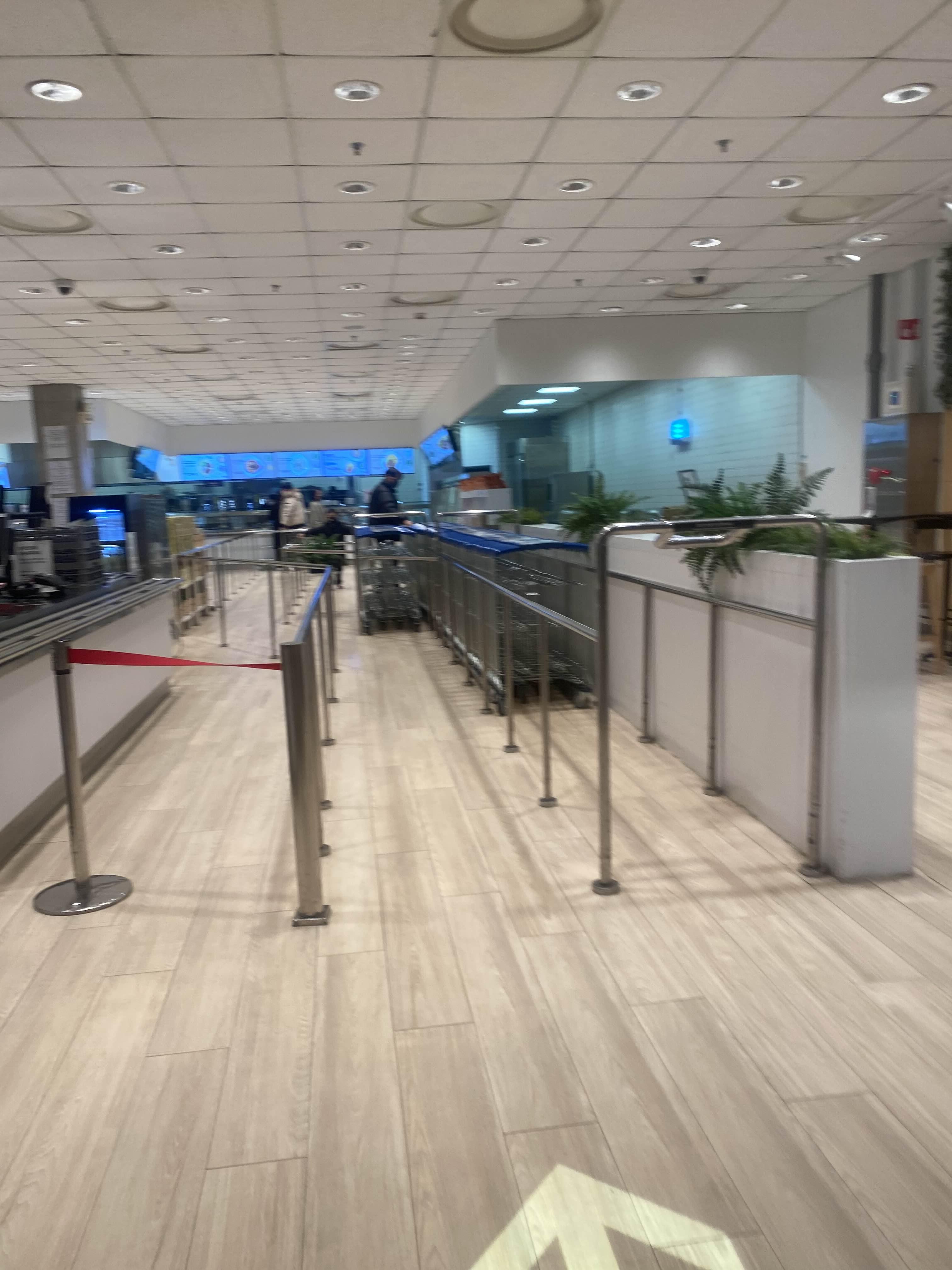 주문하는 곳 화살표방향으로 들어가서 카트를 하나 꺼낸 뒤 쟁반을 놓습니다.