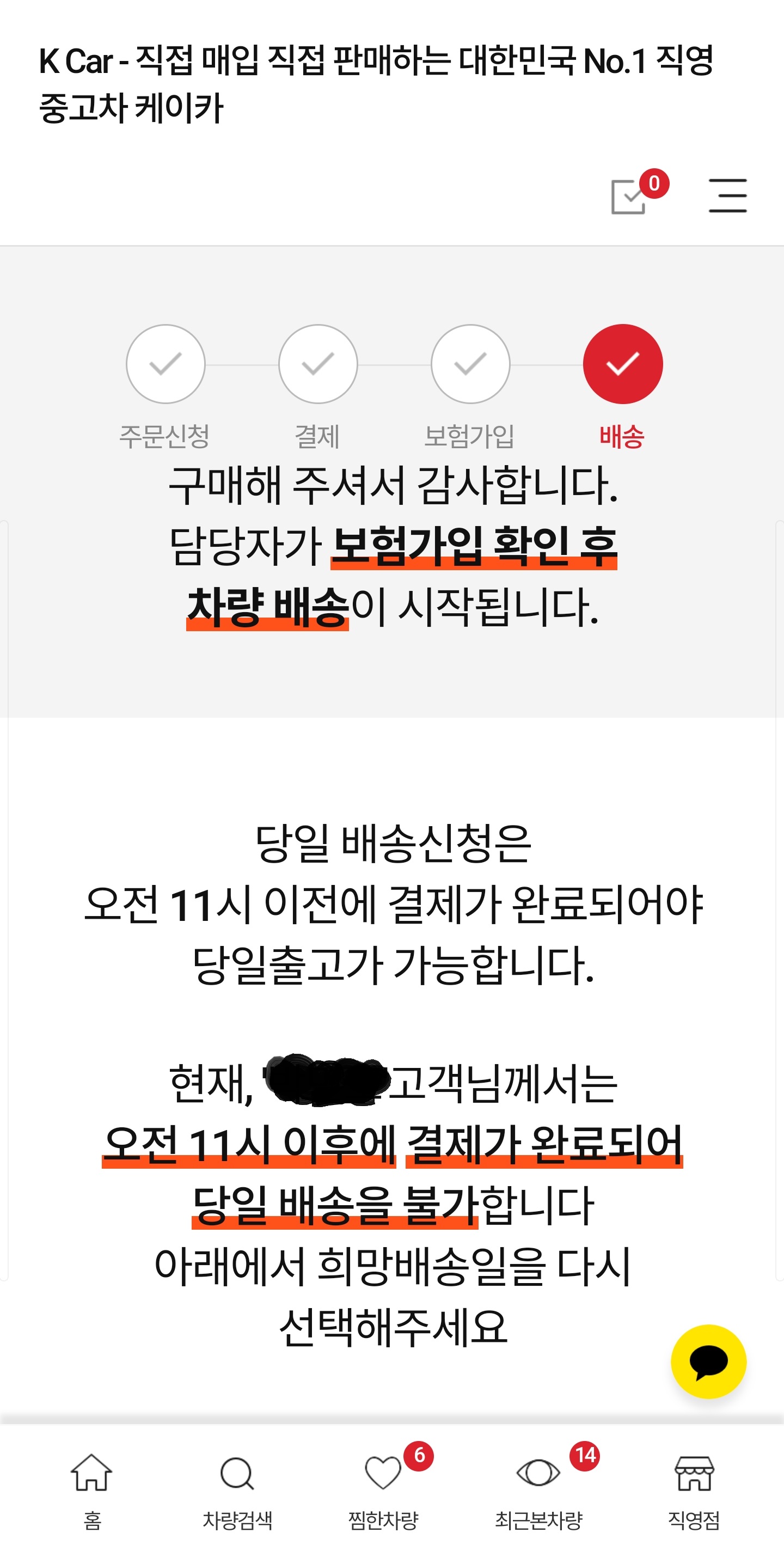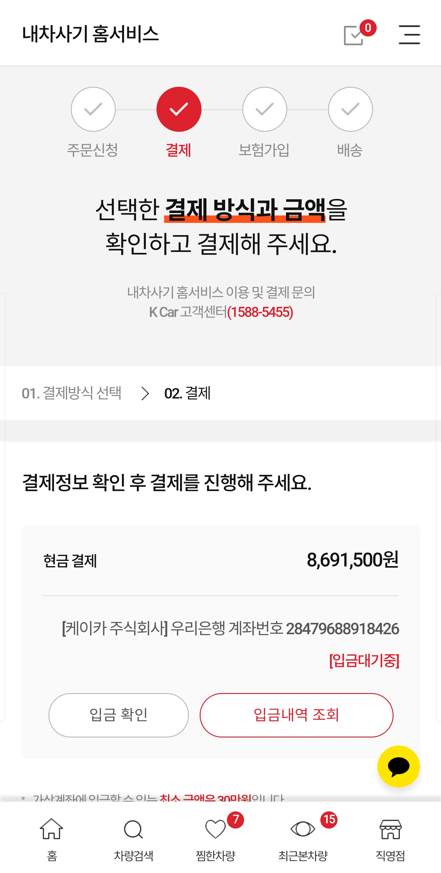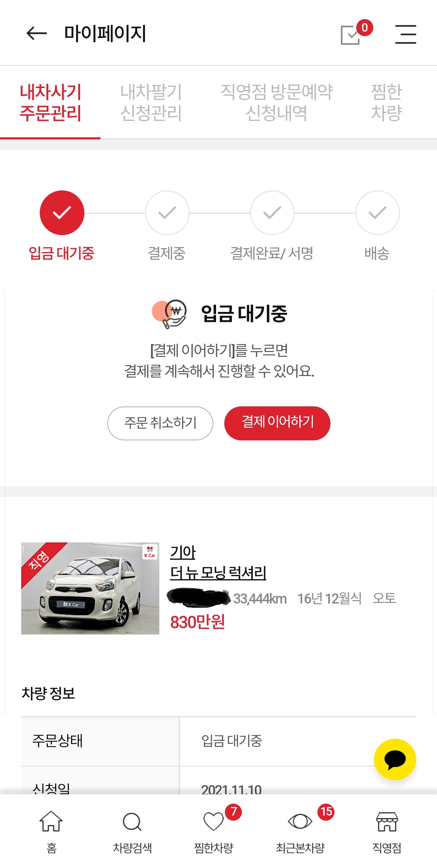 차량 값을 입금하기 전까지 이런 화면이 뜹니다.