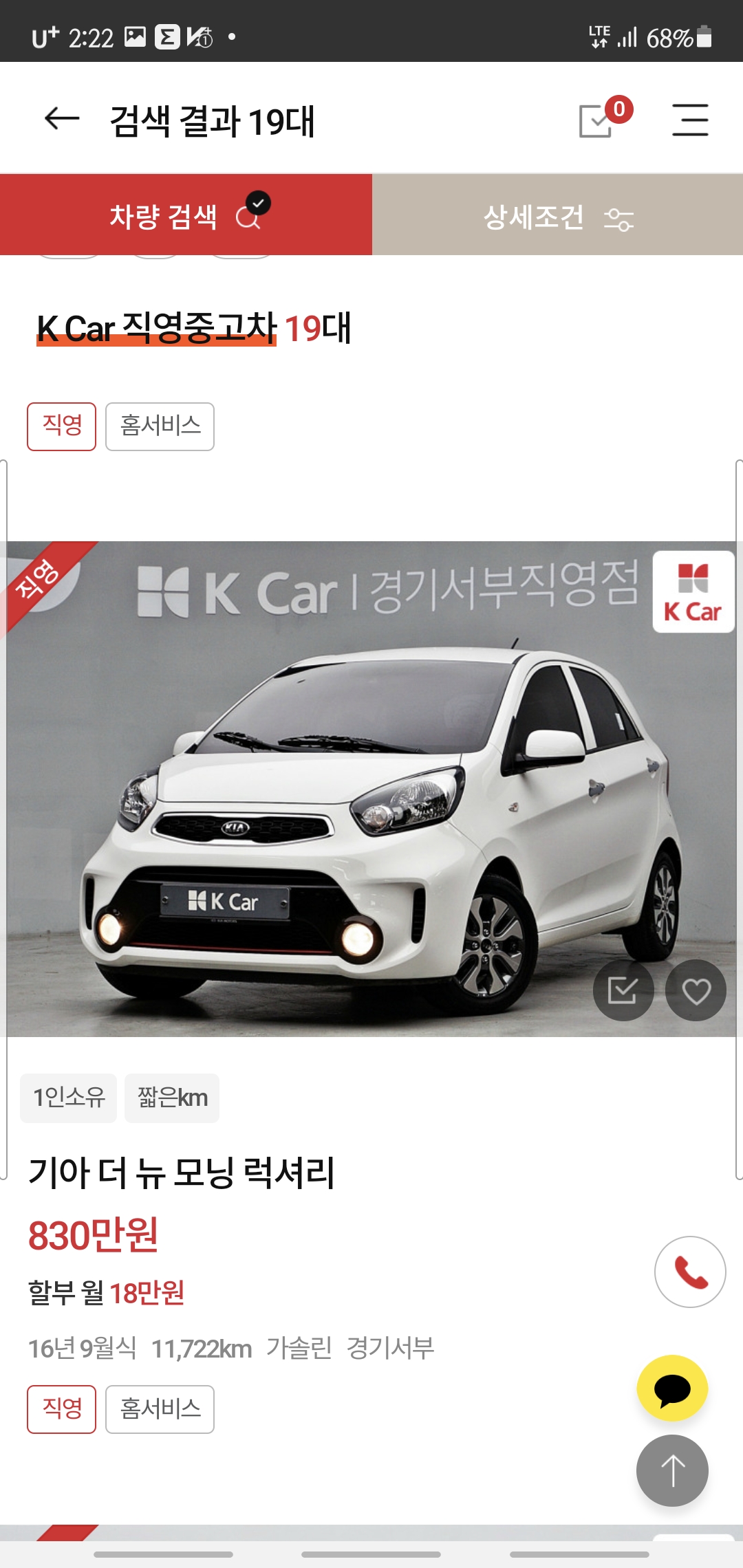 케이카 내차사기 홈서비스로 중고차 모닝을 구매했습니다.