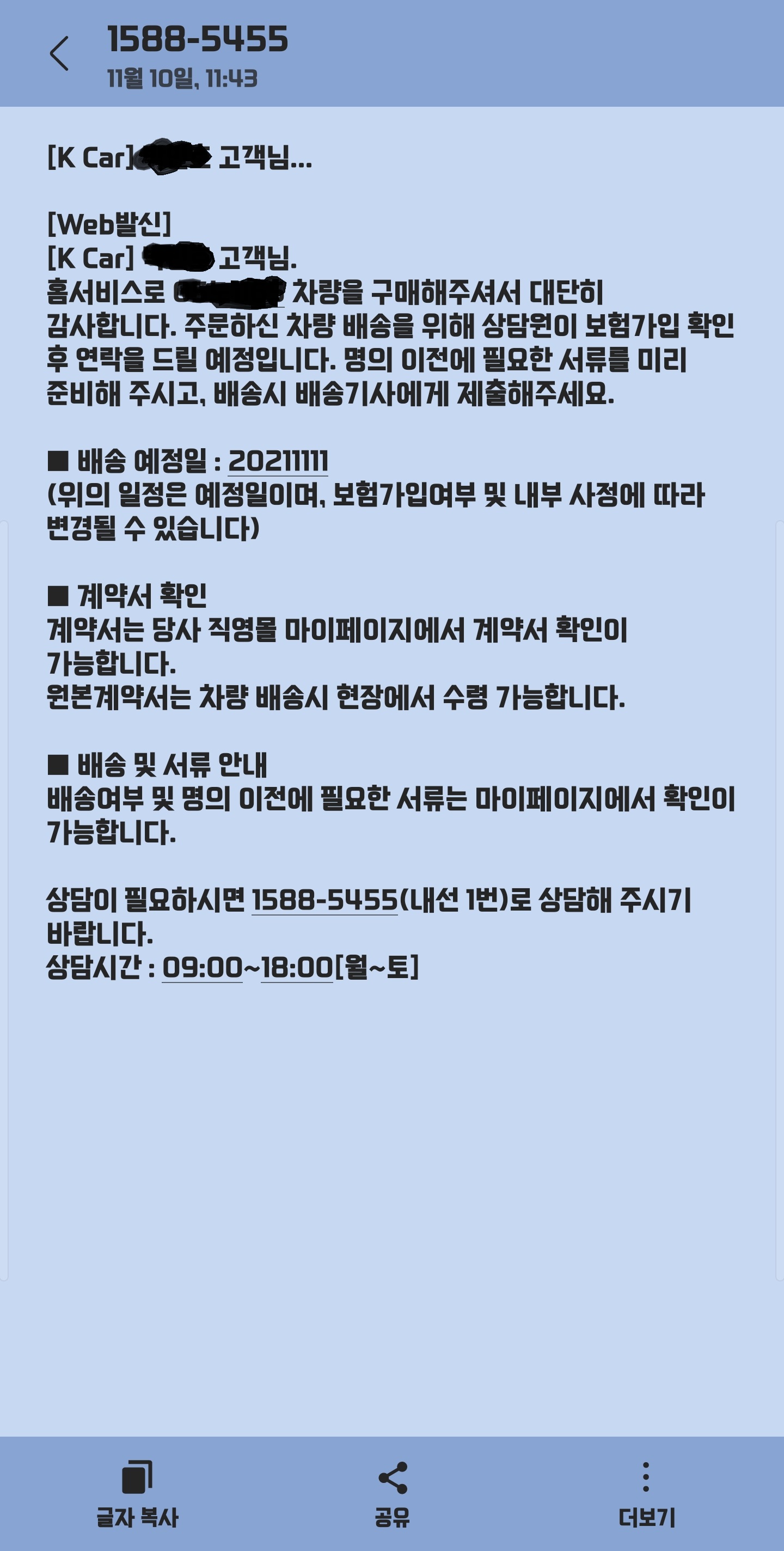 서류를 준비하고 상담원 전화를 받아 확인하면 다음 메세지가 옵니다.