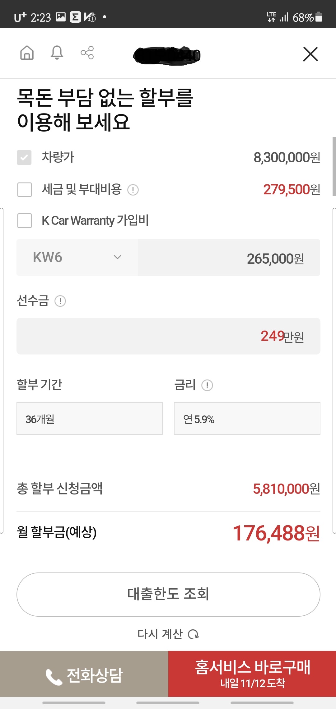 당장 목돈이 없는데 차가 급한경우 대출을 이용할 수 있게 대출 조회항목도 있습니다.