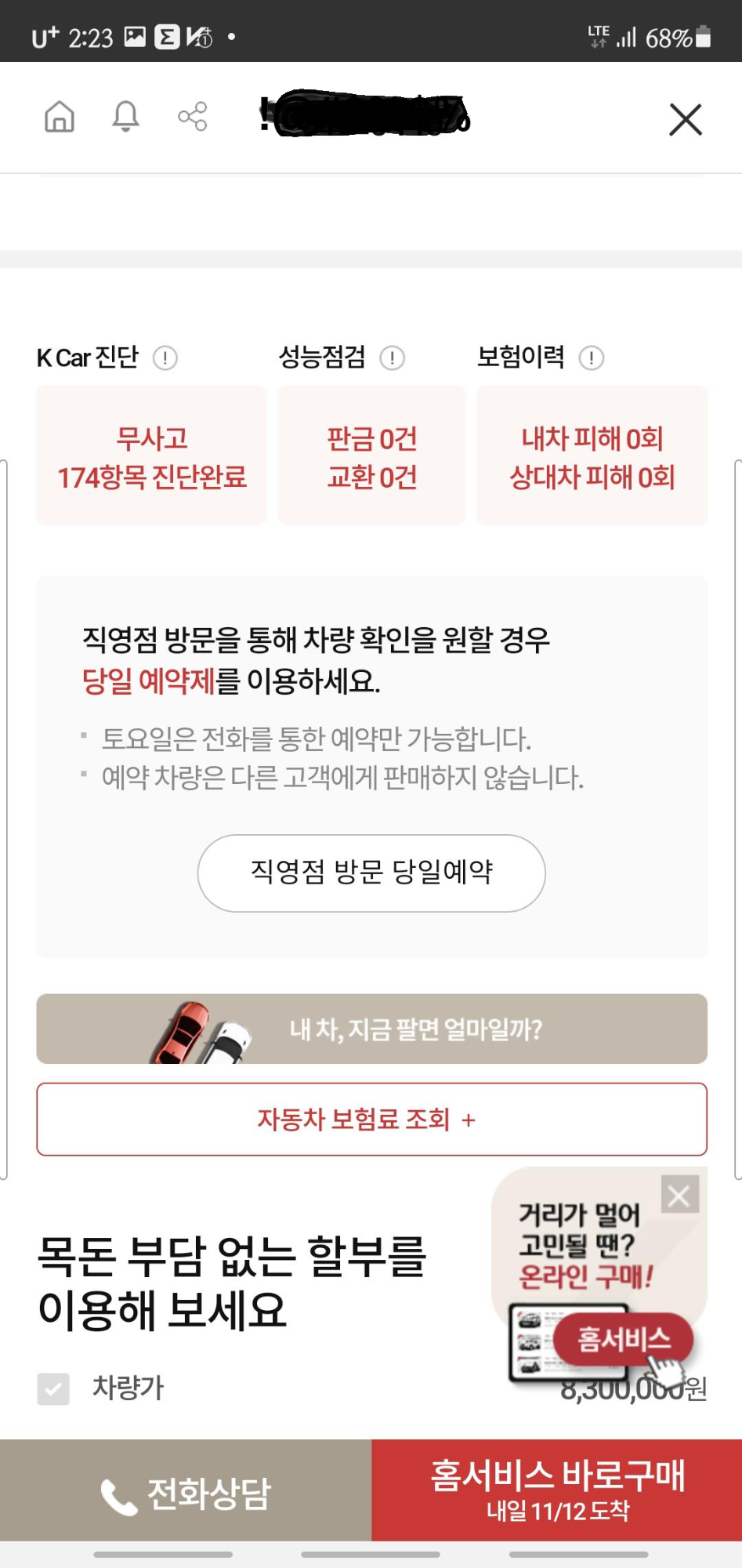 5. 맘에 드는 차를 골라 '홈서비스 바로구매' 를 누릅니다.