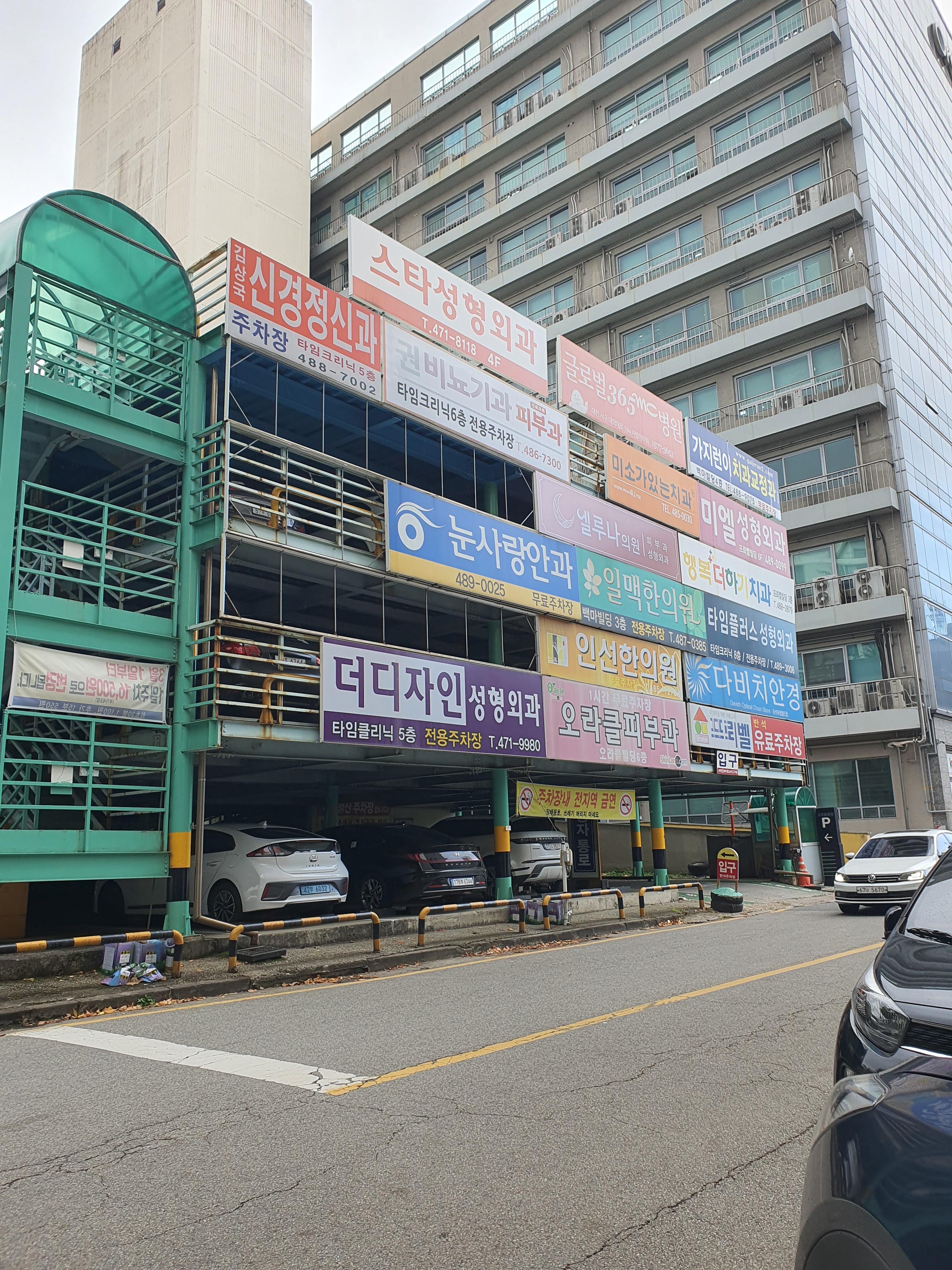 초아르헤어 건물 바로 옆에 있는 반석 유료주차장.