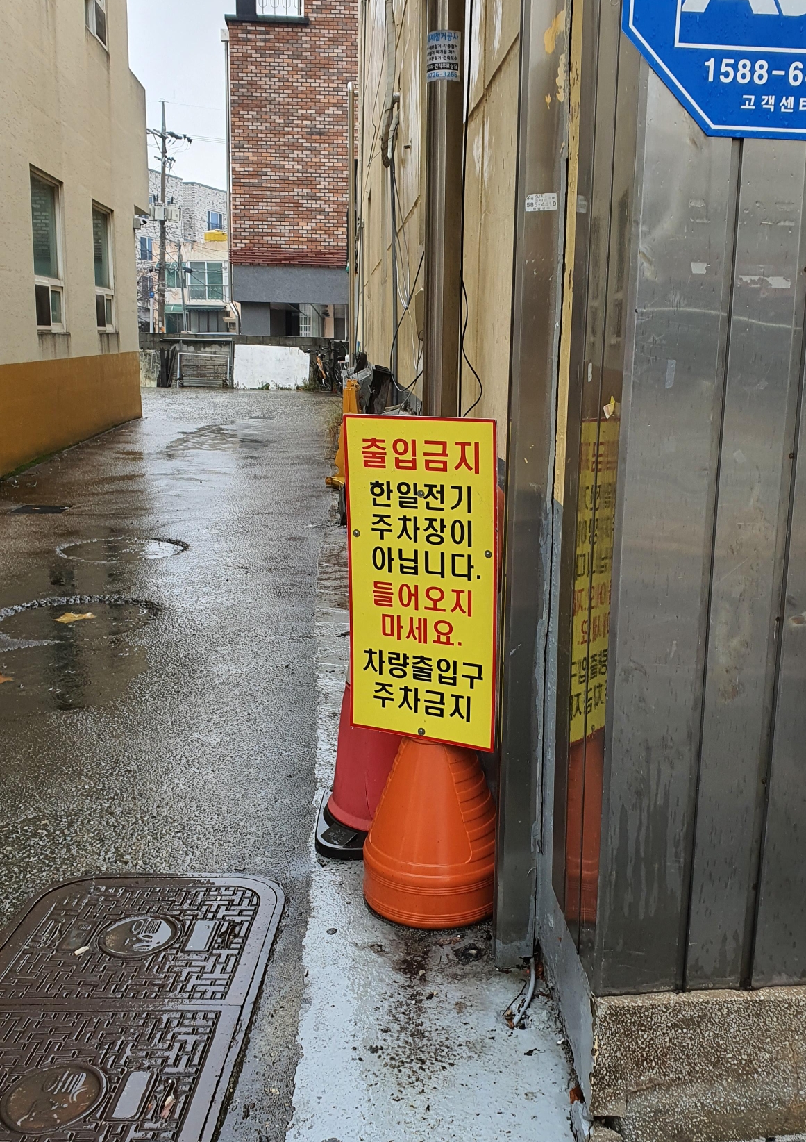 출입금지. 한일전기 주차장이 아닙니다. 들어오지 마세요. 차량출입구 주차금지.
