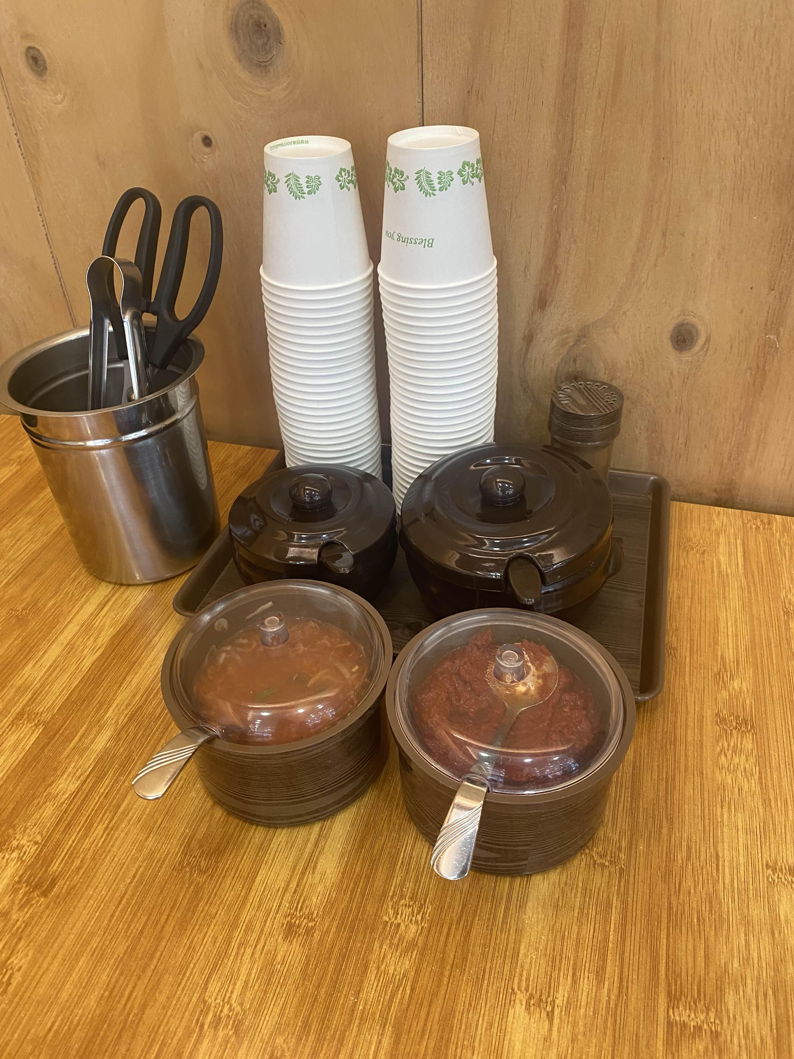 새우젓, 다대기, 소금, 들깨가루가 있습니다.