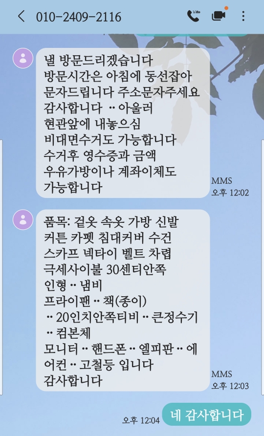 헌옷을 수거하는 왕드레김아저씨를 부르기로 했습니다.