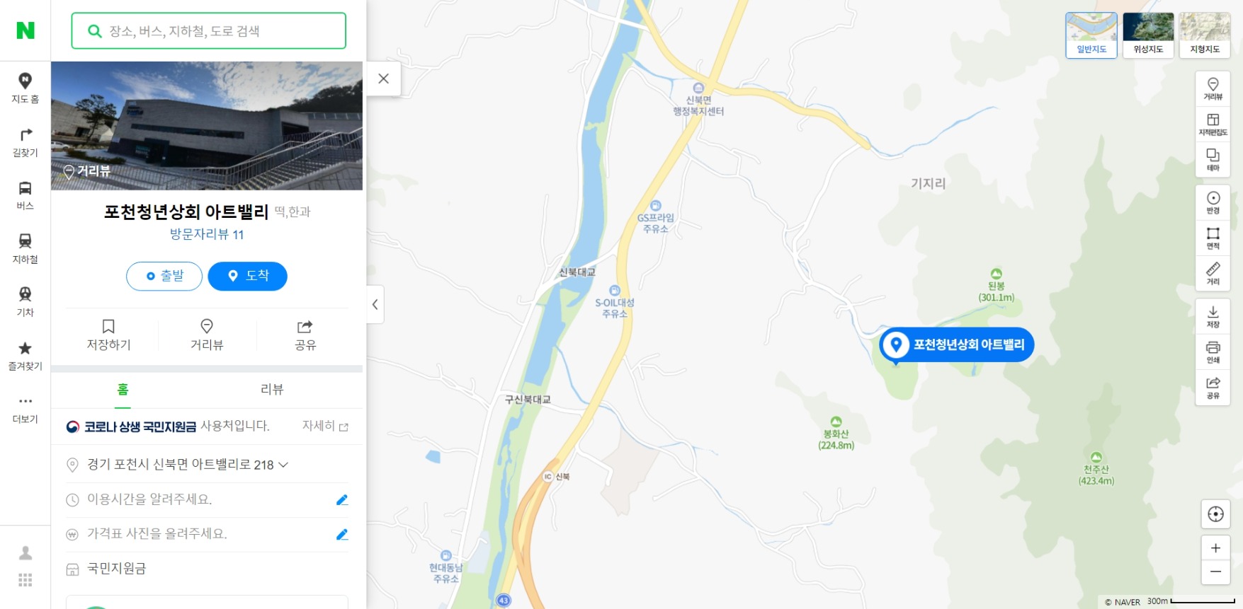 주소 : 경기 포천시 신북면 아트밸리로 218 청년여행LAB 건물 1층