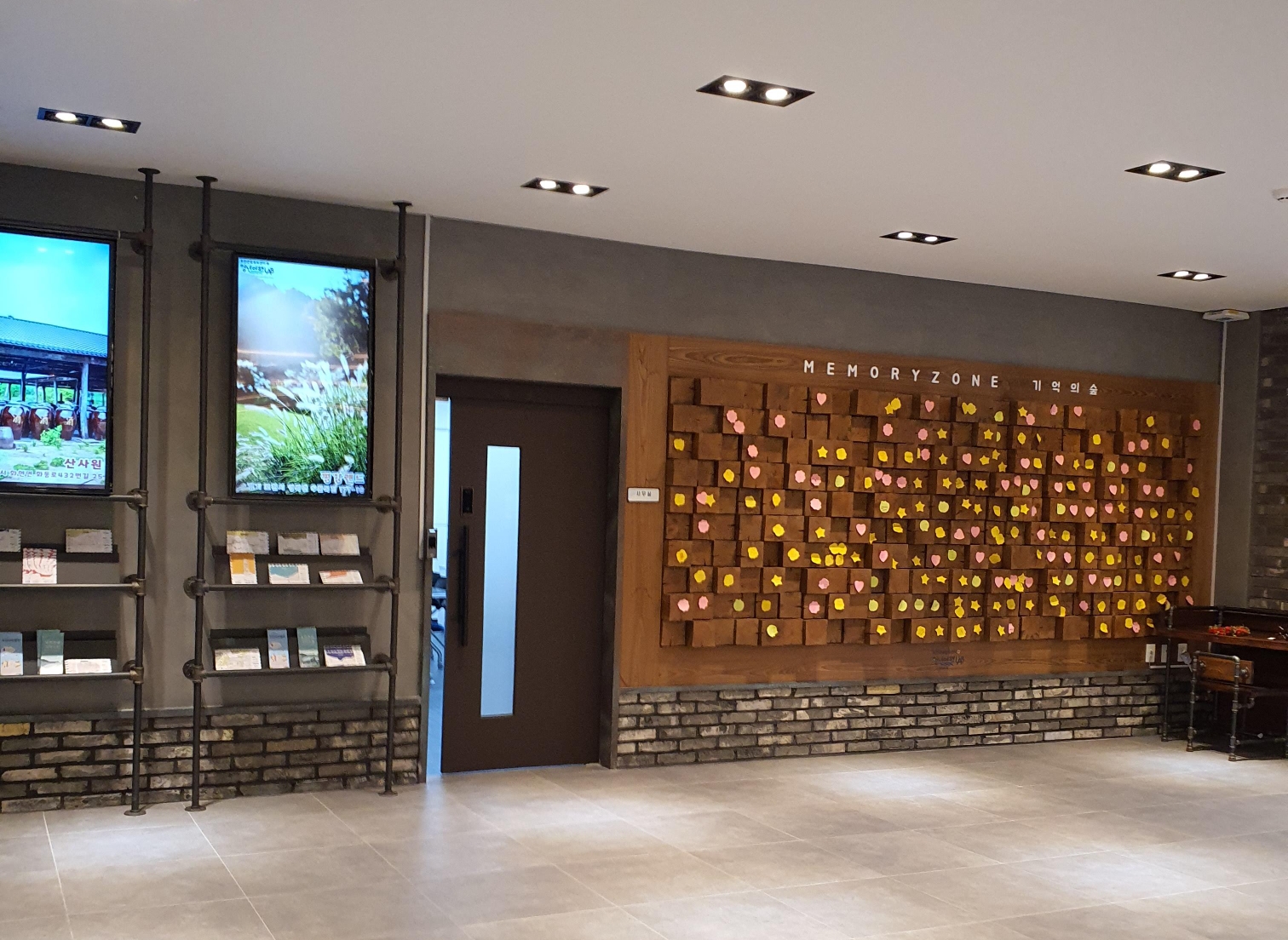 관광지 팸플렛과 포스트잇으로 글을 남길수 있는 벽도 있습니다.