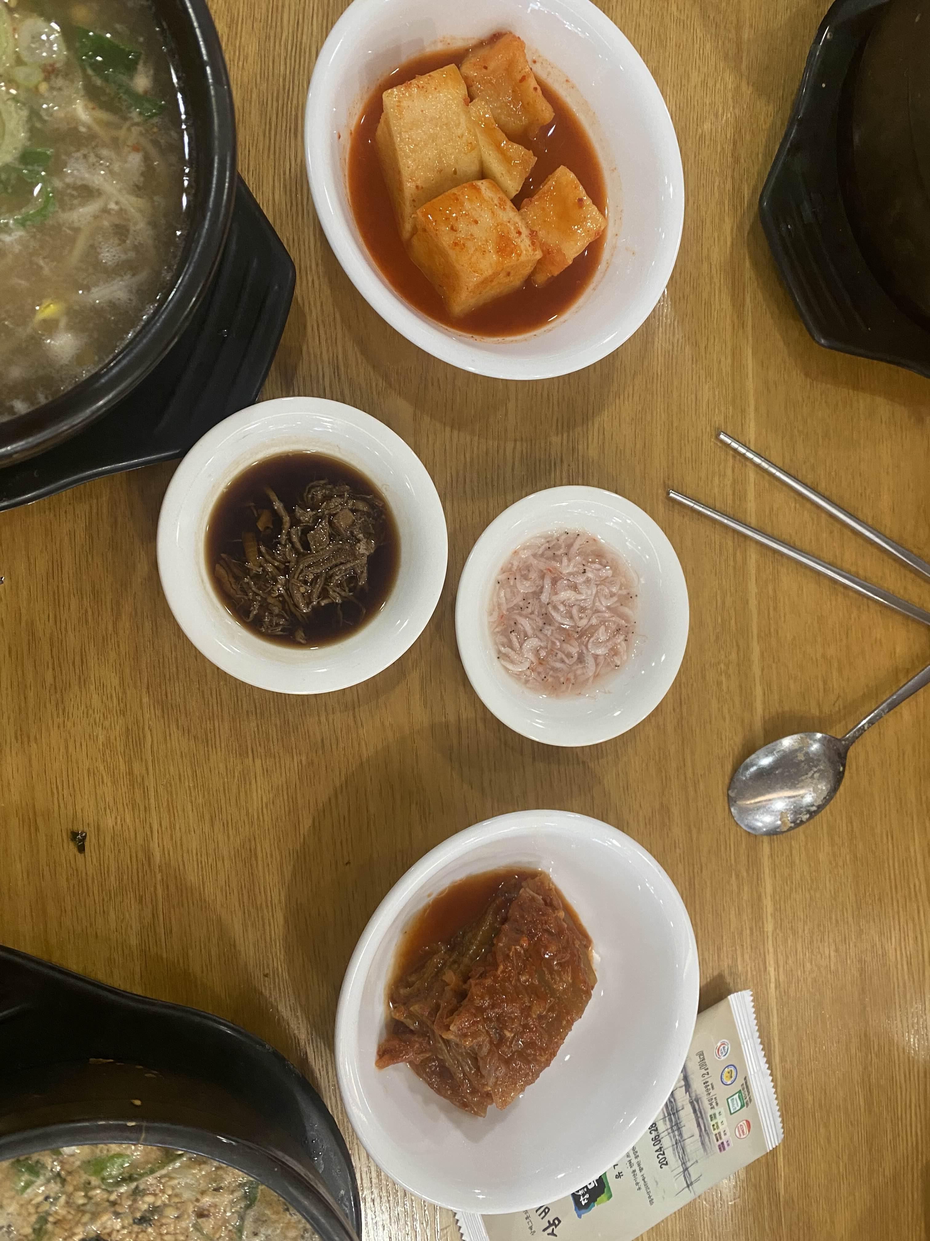 기본찬이 나옵니다.