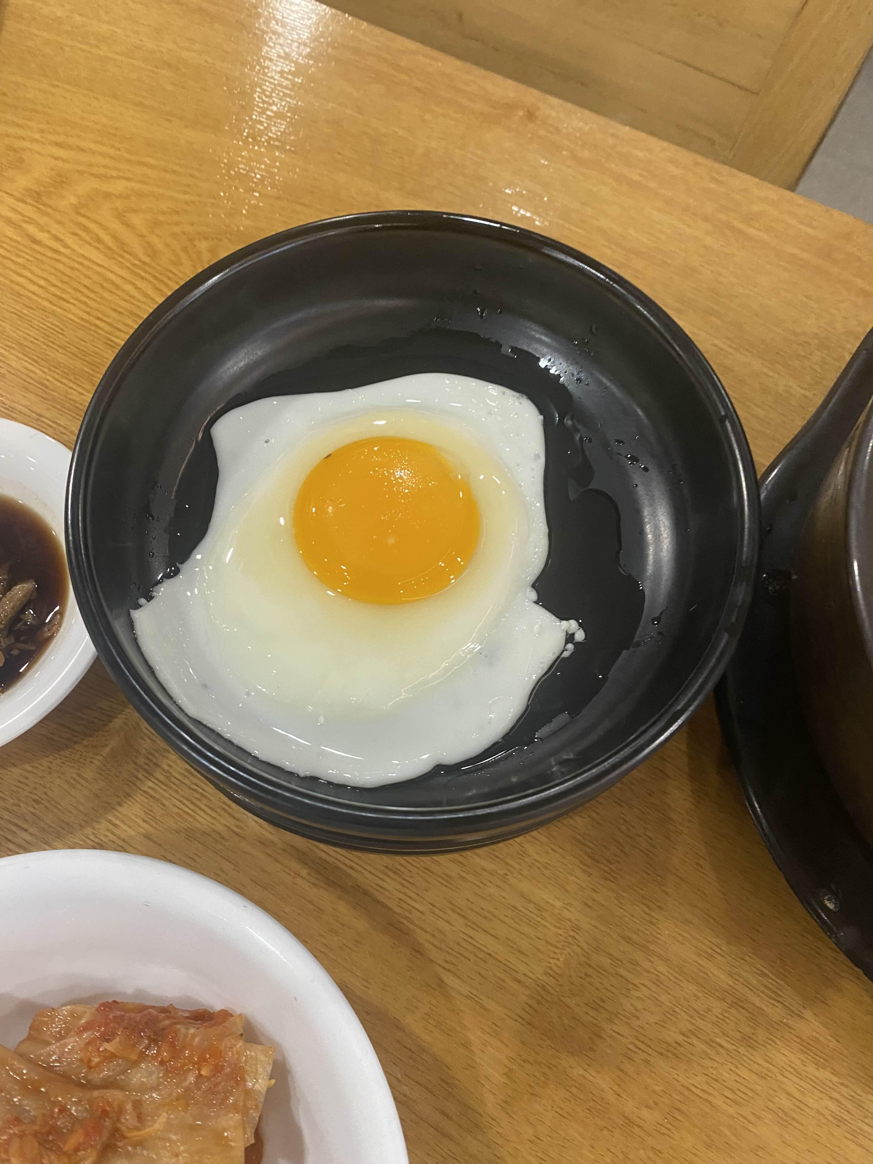왱이집은 쇠그릇에 반숙으로 나오거덩요.