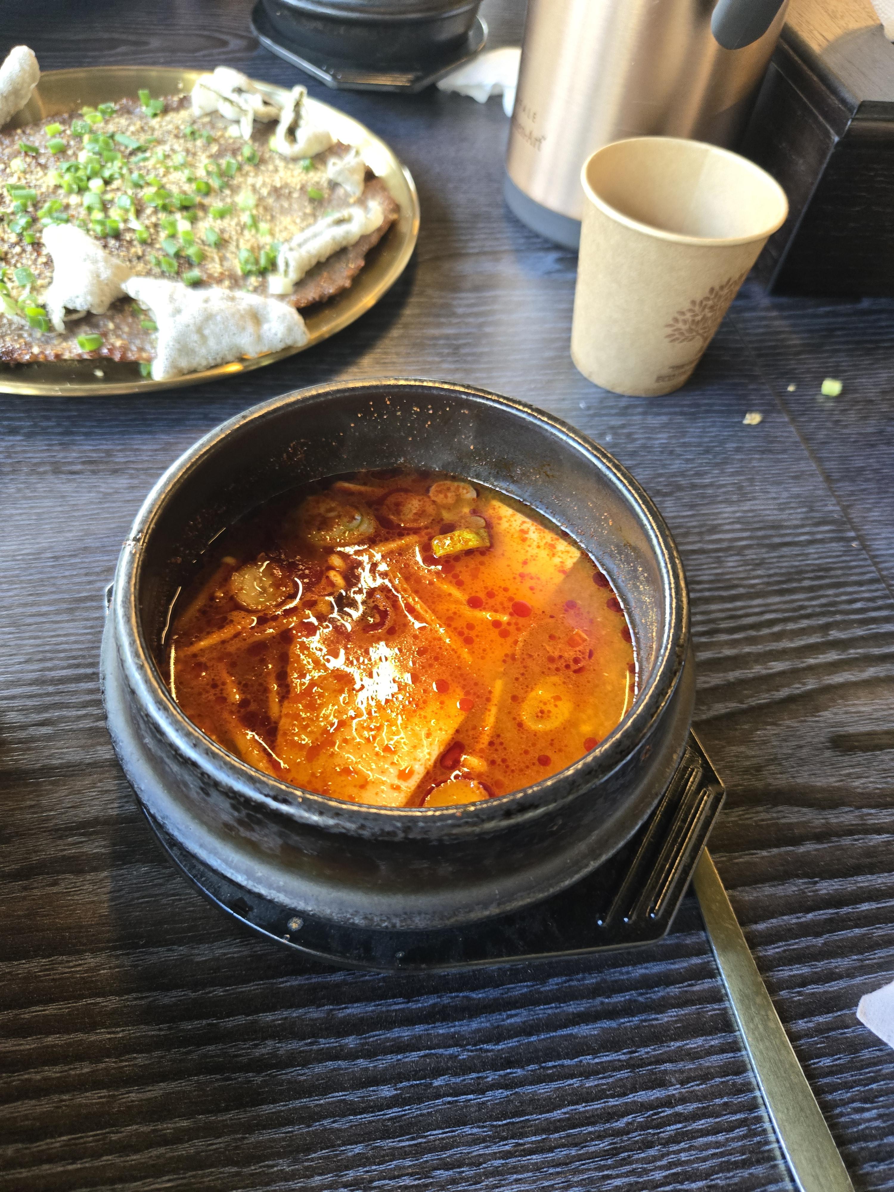 솥밥을 주문하면 청국장 또는 순두부 찌개중 선택하는데 대부분의 손님들이 순두부를 먹길래 우리도 순두부를 주문했다.