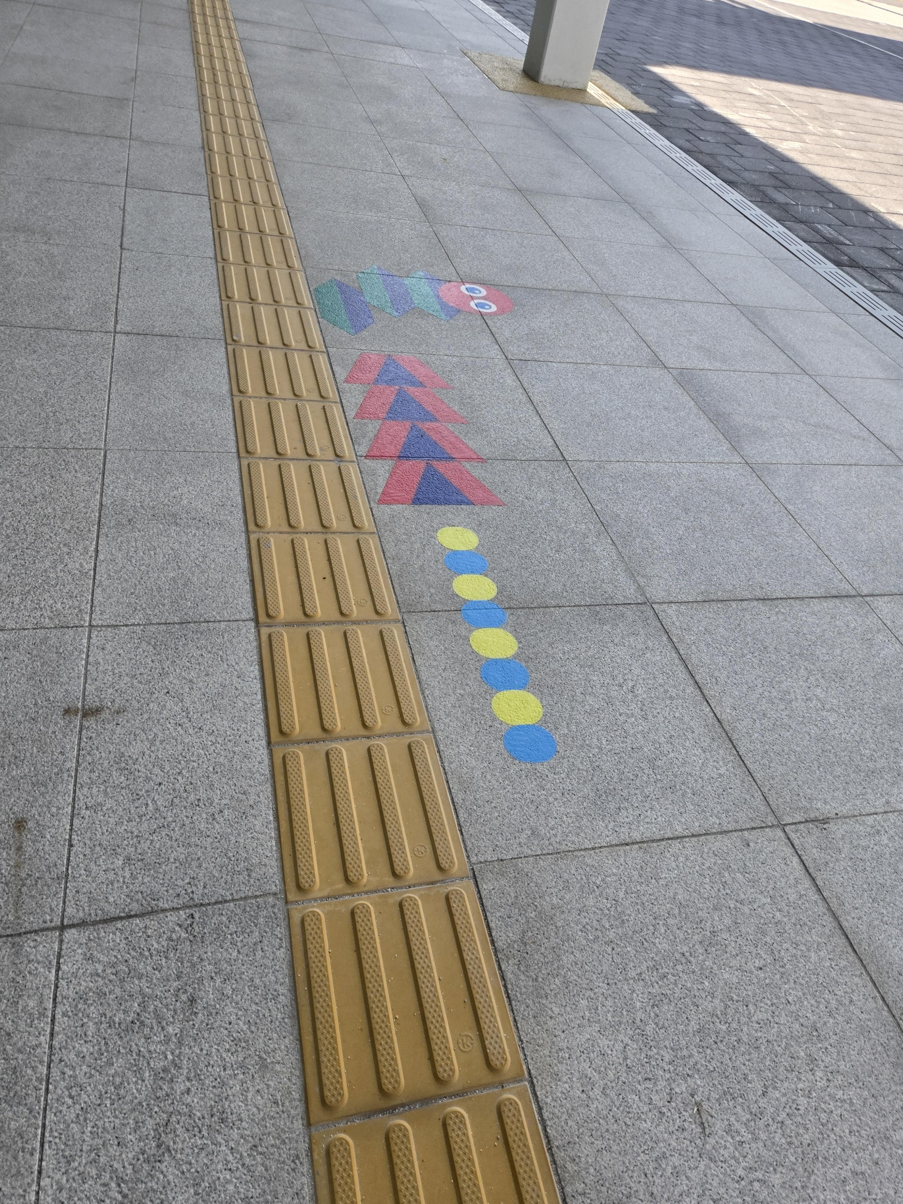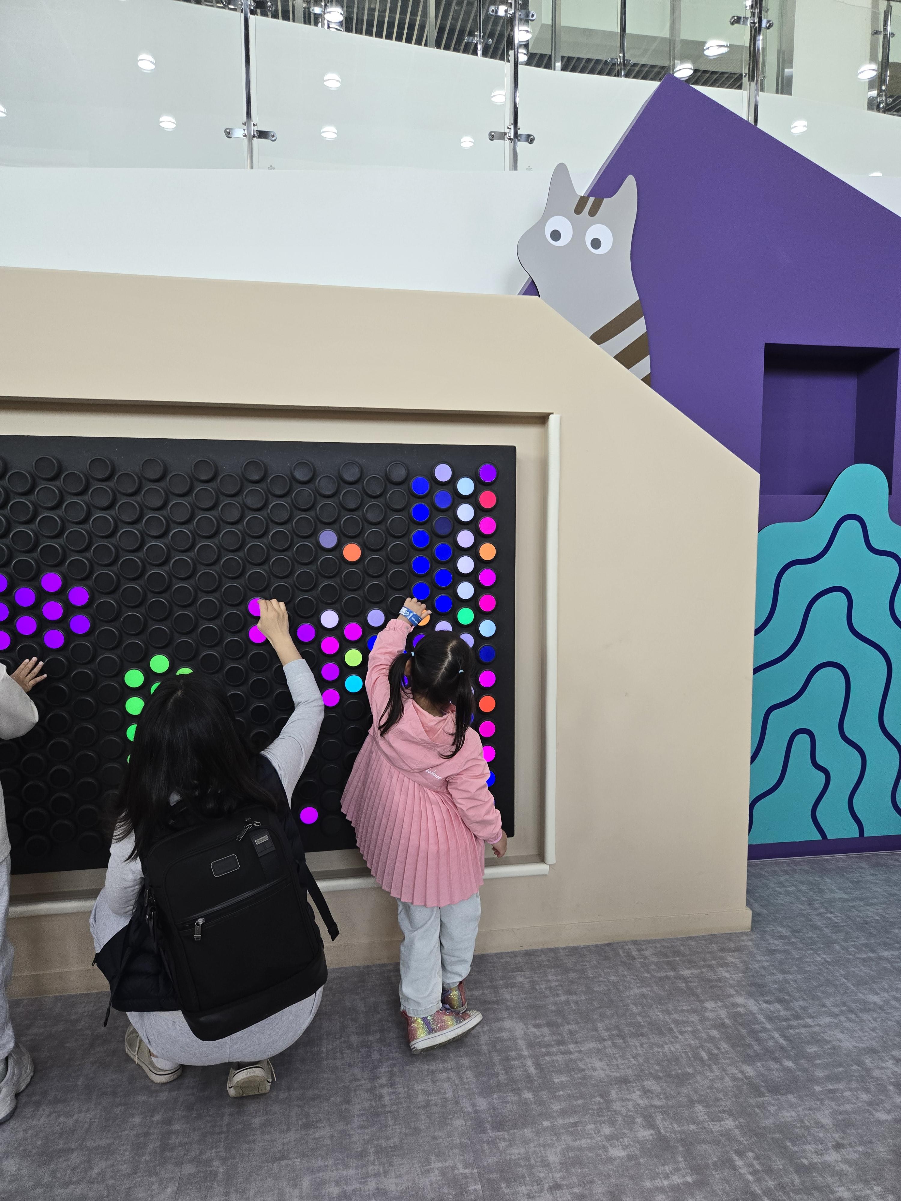 1층 로비에 알록달록 다양한 도형으로 이루어진 조형물을 지납니다.