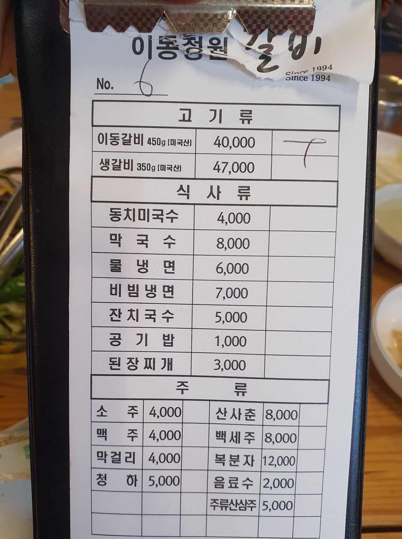 별관 벽에는 메뉴판이 안붙어 있었습니다. 주문서를 찍어보았습니다.