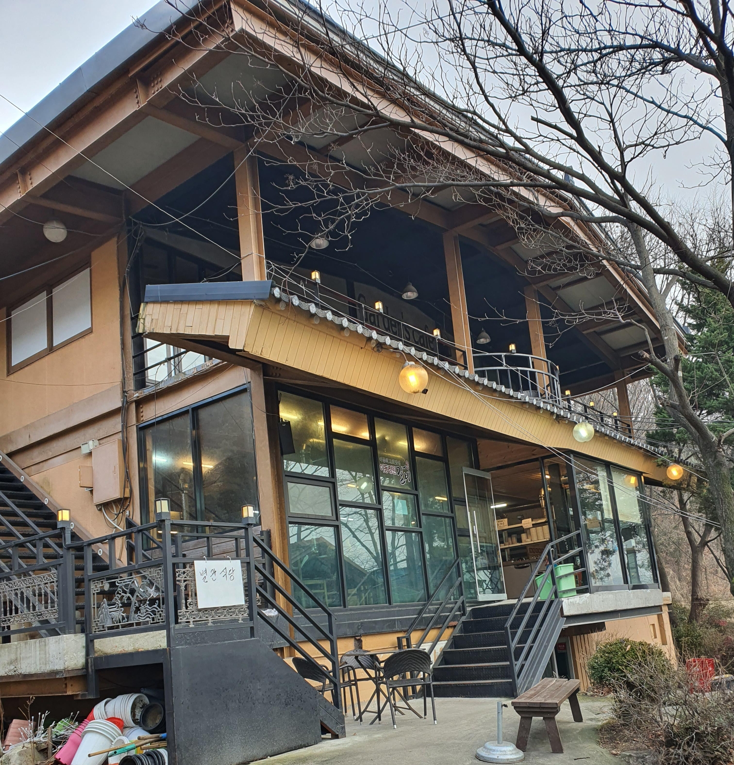 본관 앞과 야외테이블은 이렇습니다.