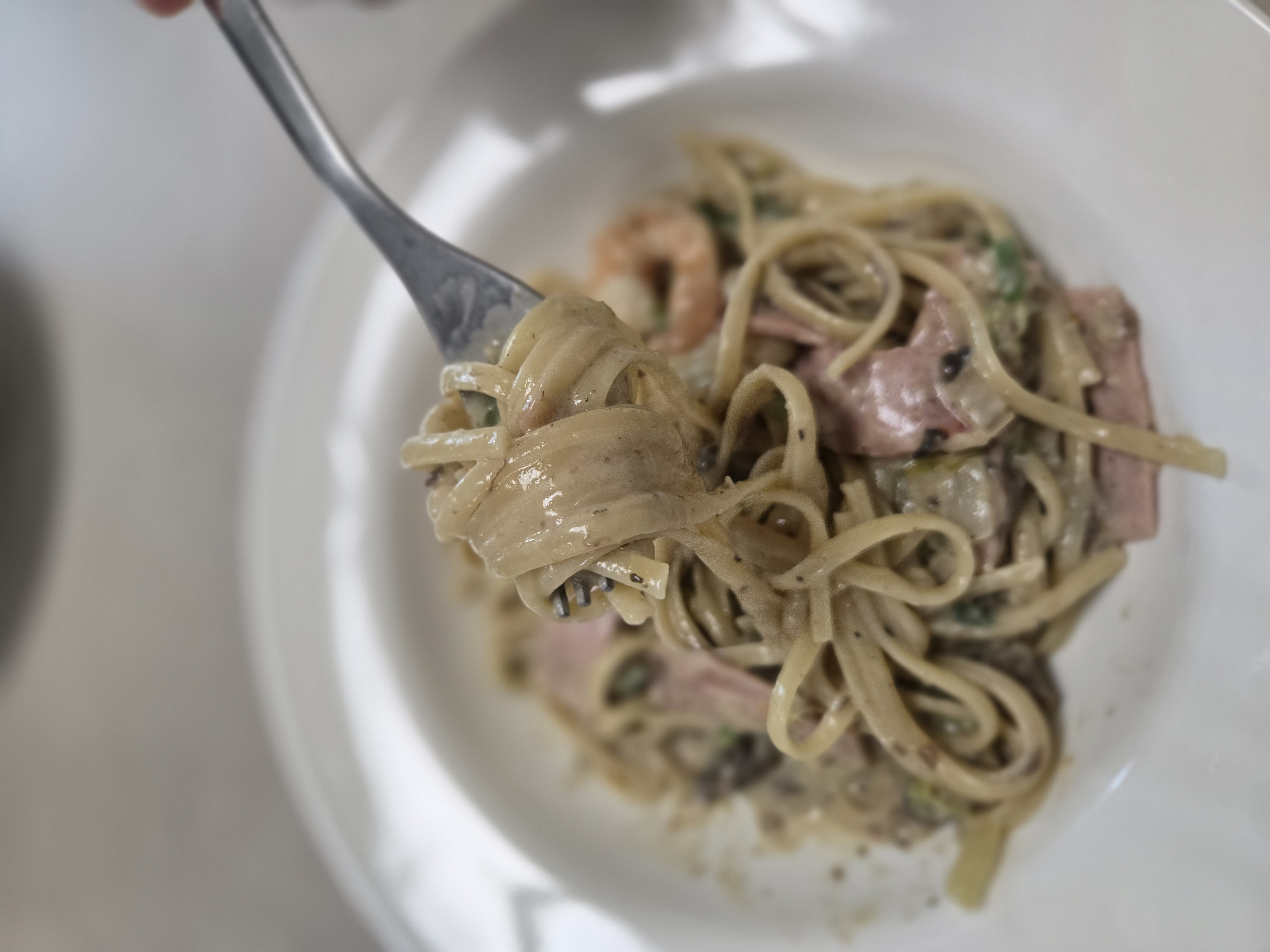 - 부재료: 햄 (베이컨 대신), 양파, 다진 마늘, 페퍼론치노