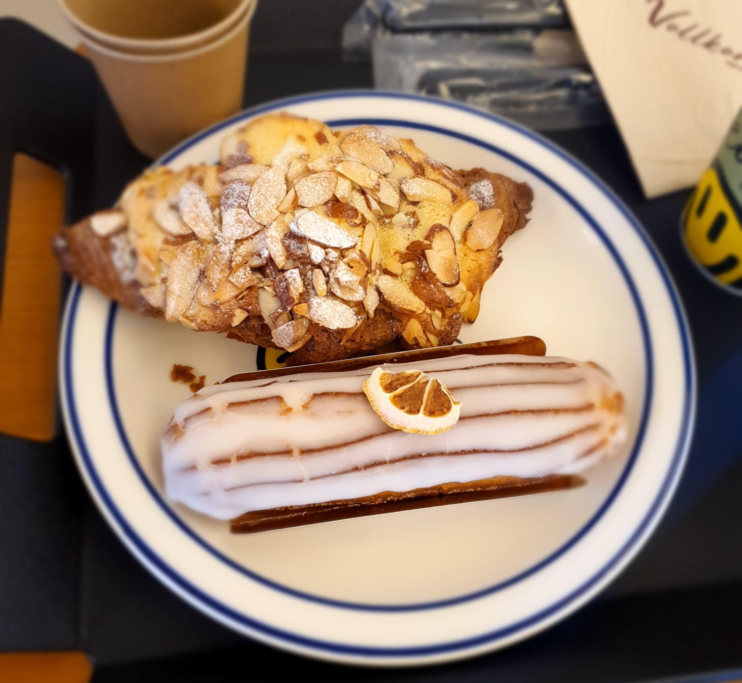 레몬 에클레어와 아몬드 크로와상입니다.