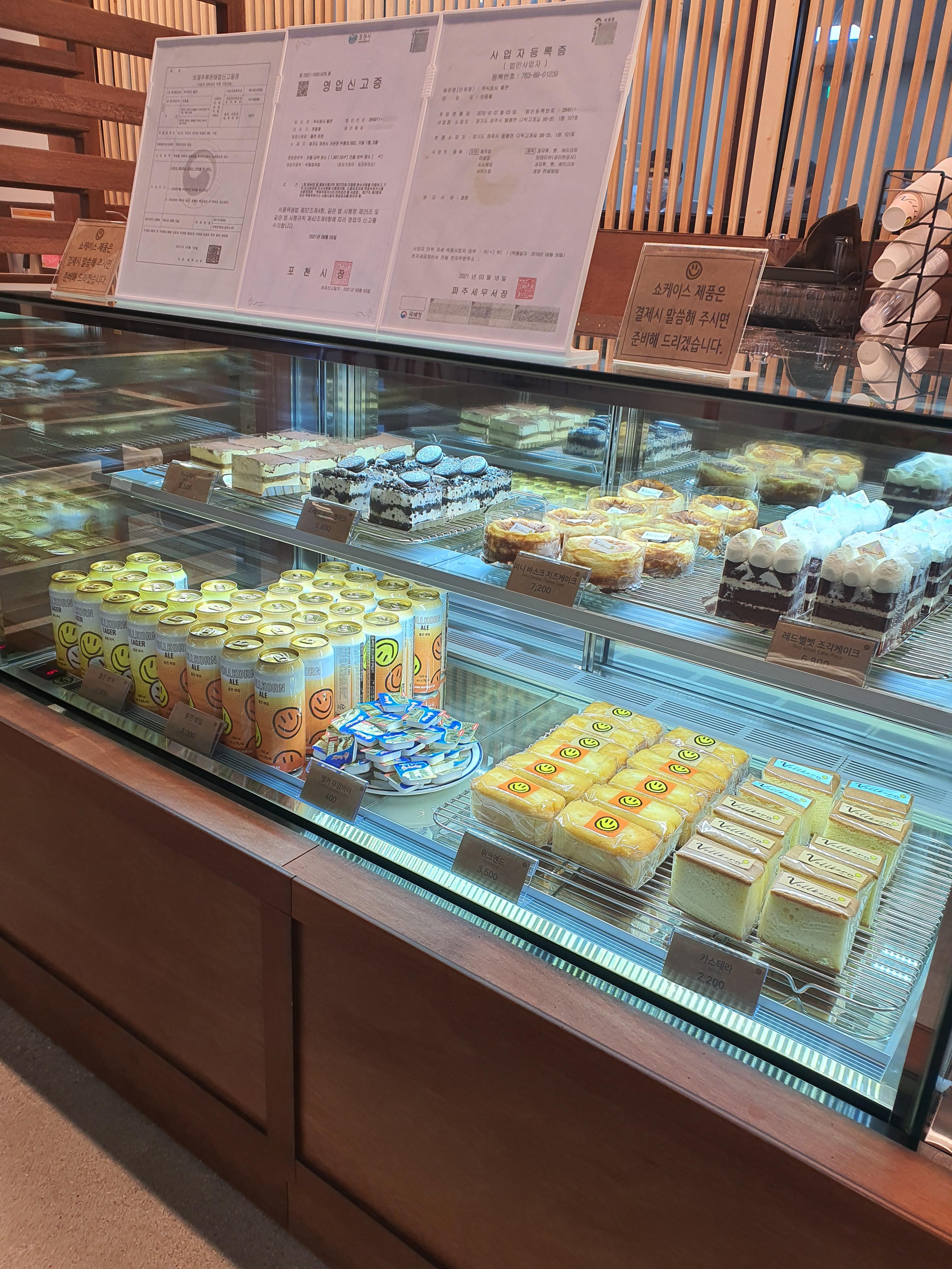 카스테라, 치즈케익 등등이 있고 그 옆에 에일 맥주 두종류가 있습니다. 맥주 부루잉도 하나봅니다.