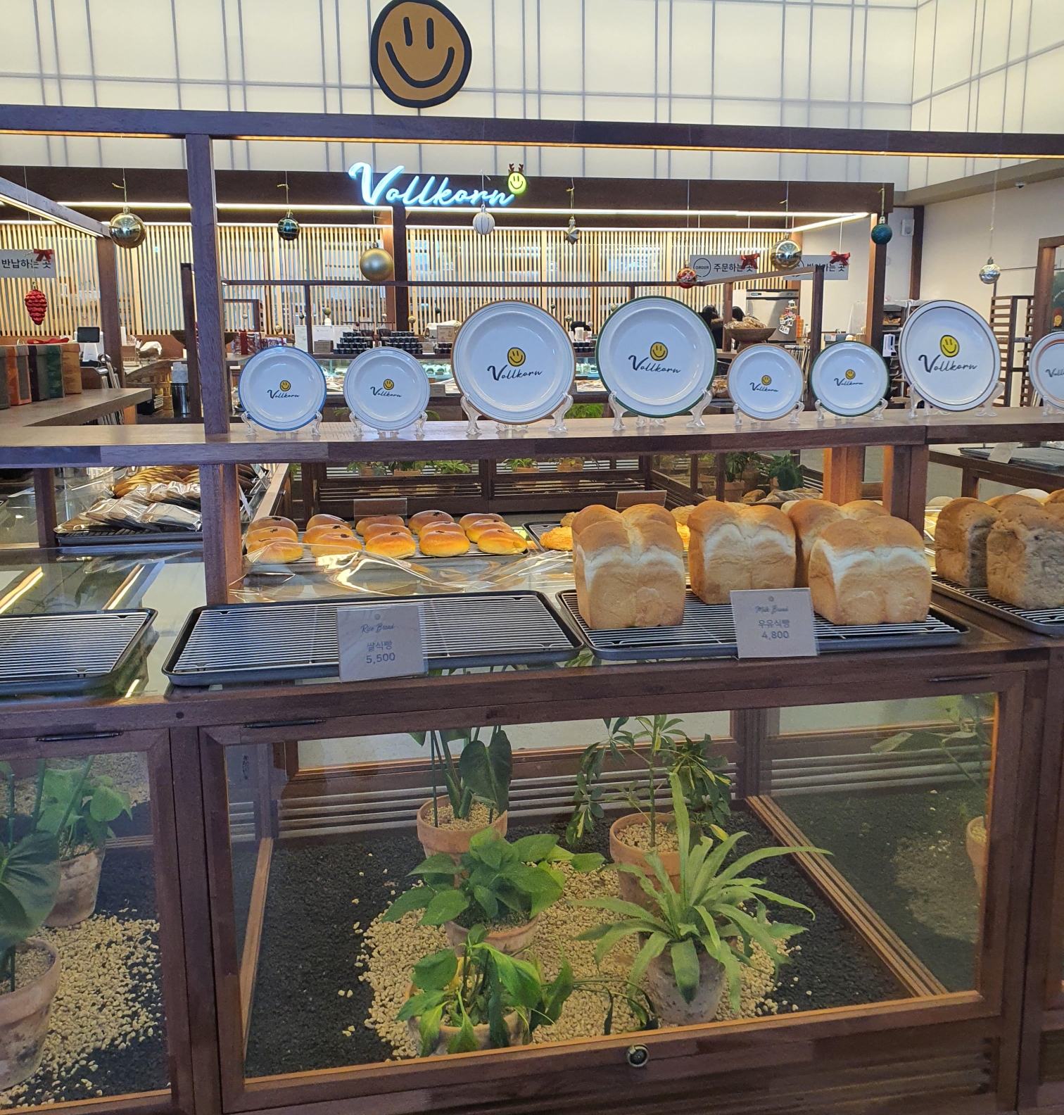 빵매대도 특이 했던 것이 빵 진열대 아래공간에 식물을 넣어놓은 것이 싱그러운 느낌을 자아 냅니다.