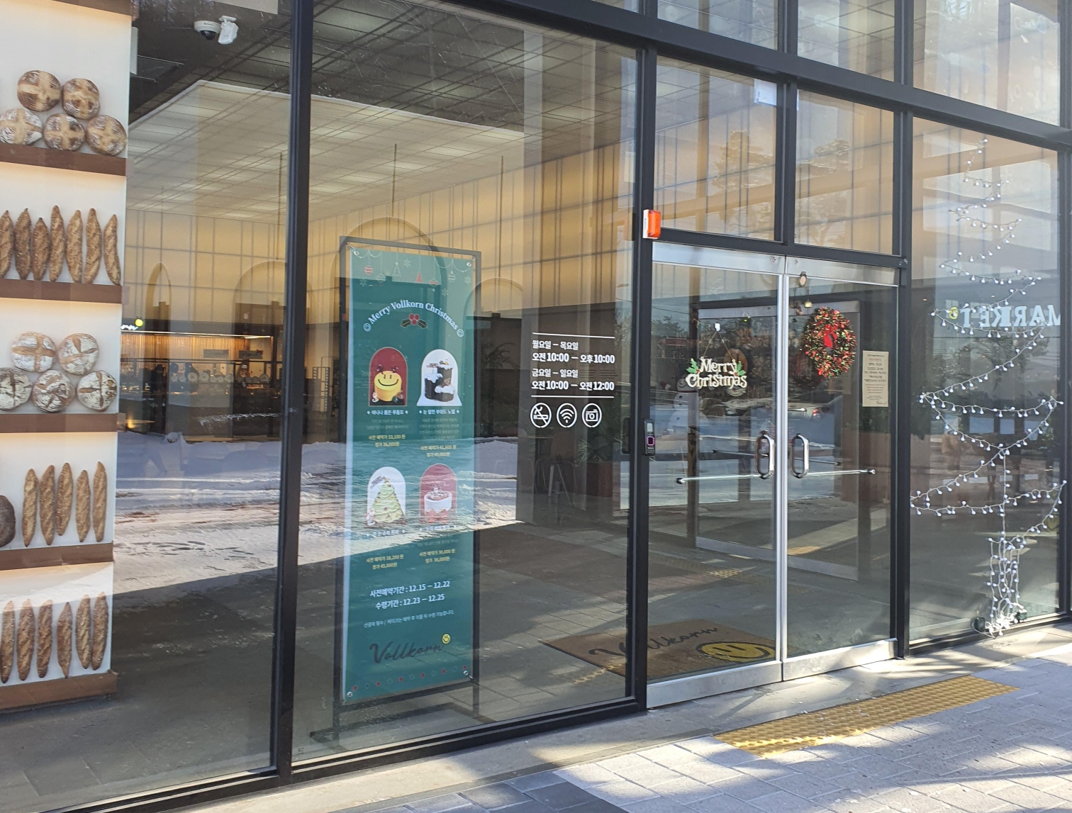 들어가는 입구옆에는 크리스마스케익 예약을 알리는 것이 있습니다.
