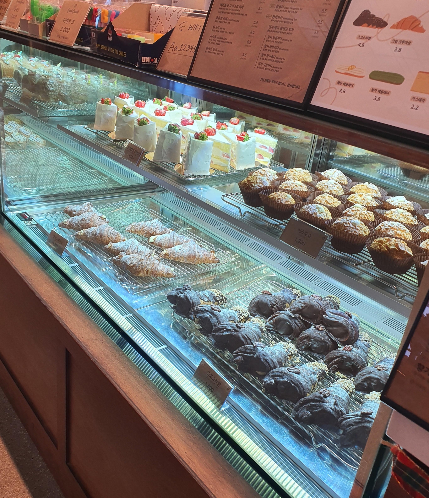 빵을 골랐으면 음료주문과 함께 계산합니다. 케익은 원하는것을 골라서 말하면 꺼내 줍니다.
