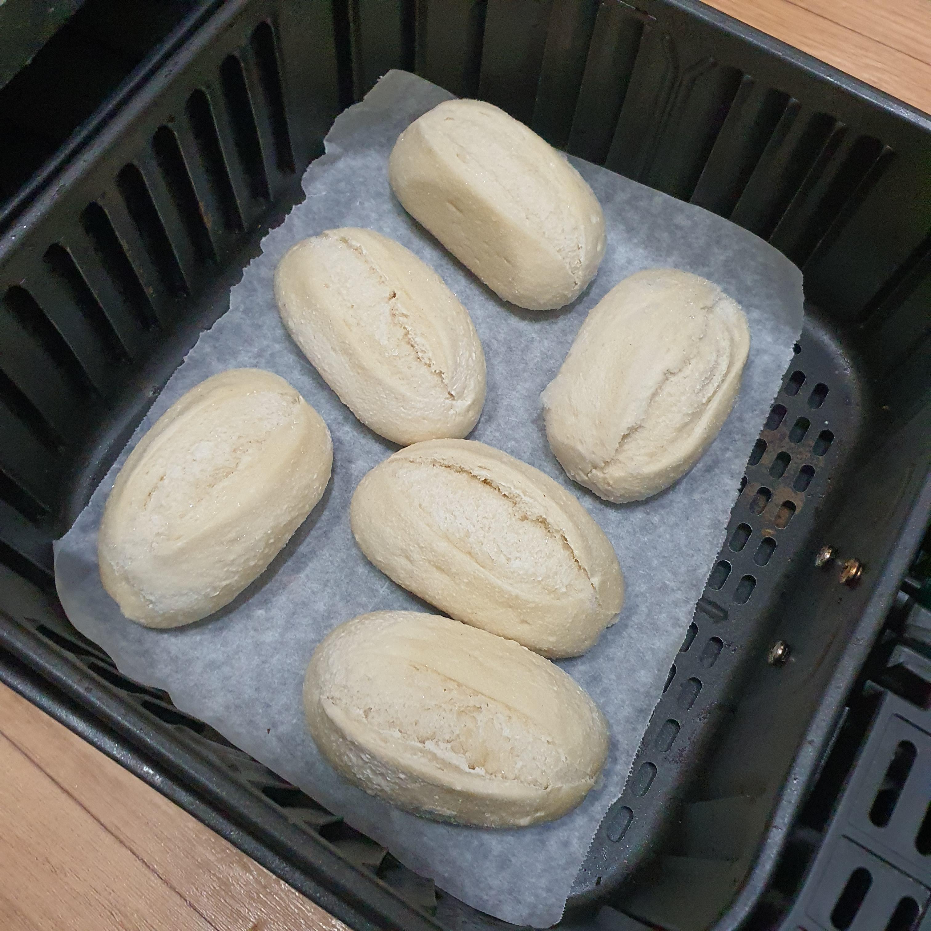 에어프라이에 꽁꽁 언 생지를 넣습니다.