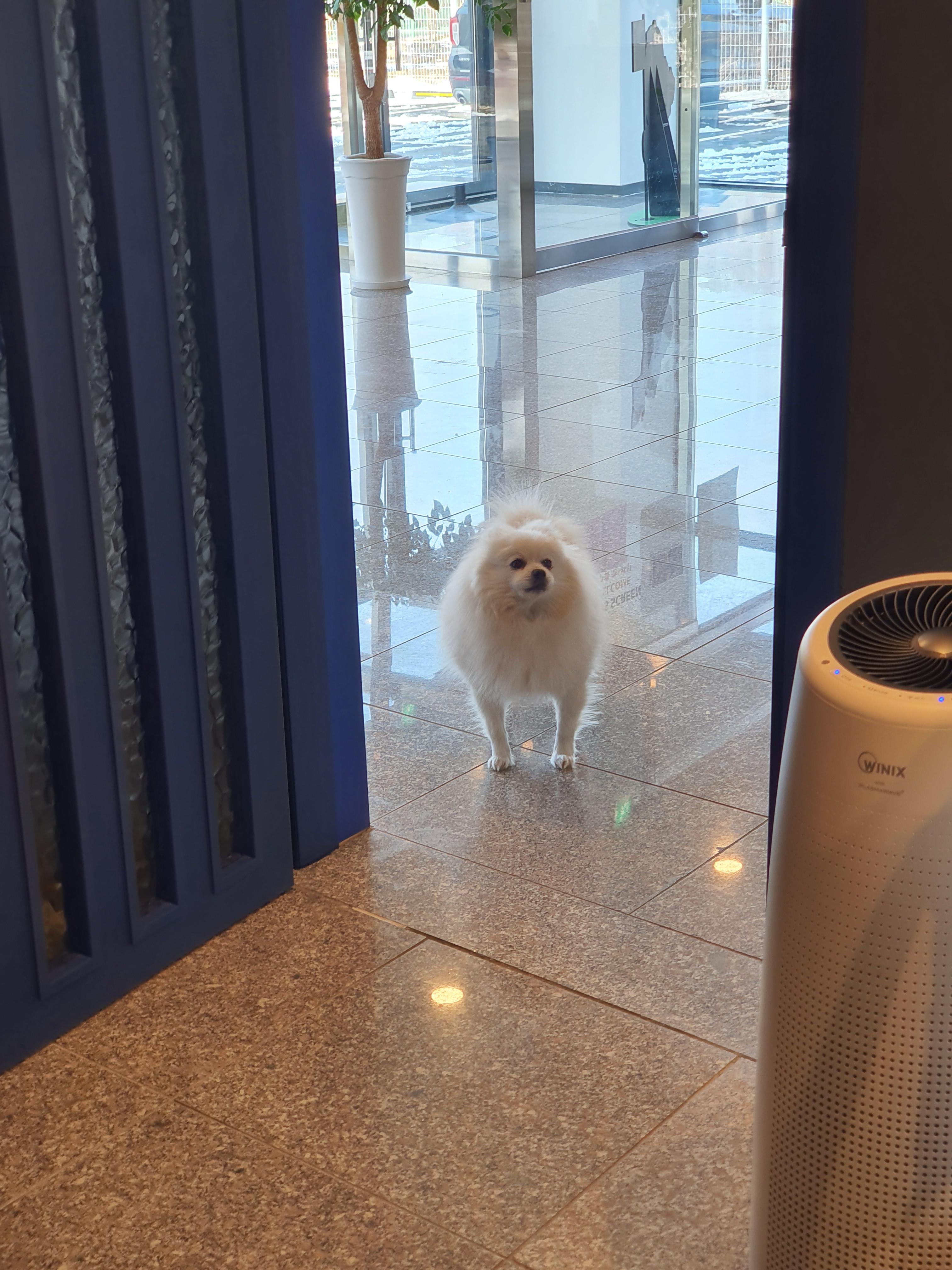 골프장의 강아지. 귀엽습니다. 들어오지는 않고 지켜보기만합니다.