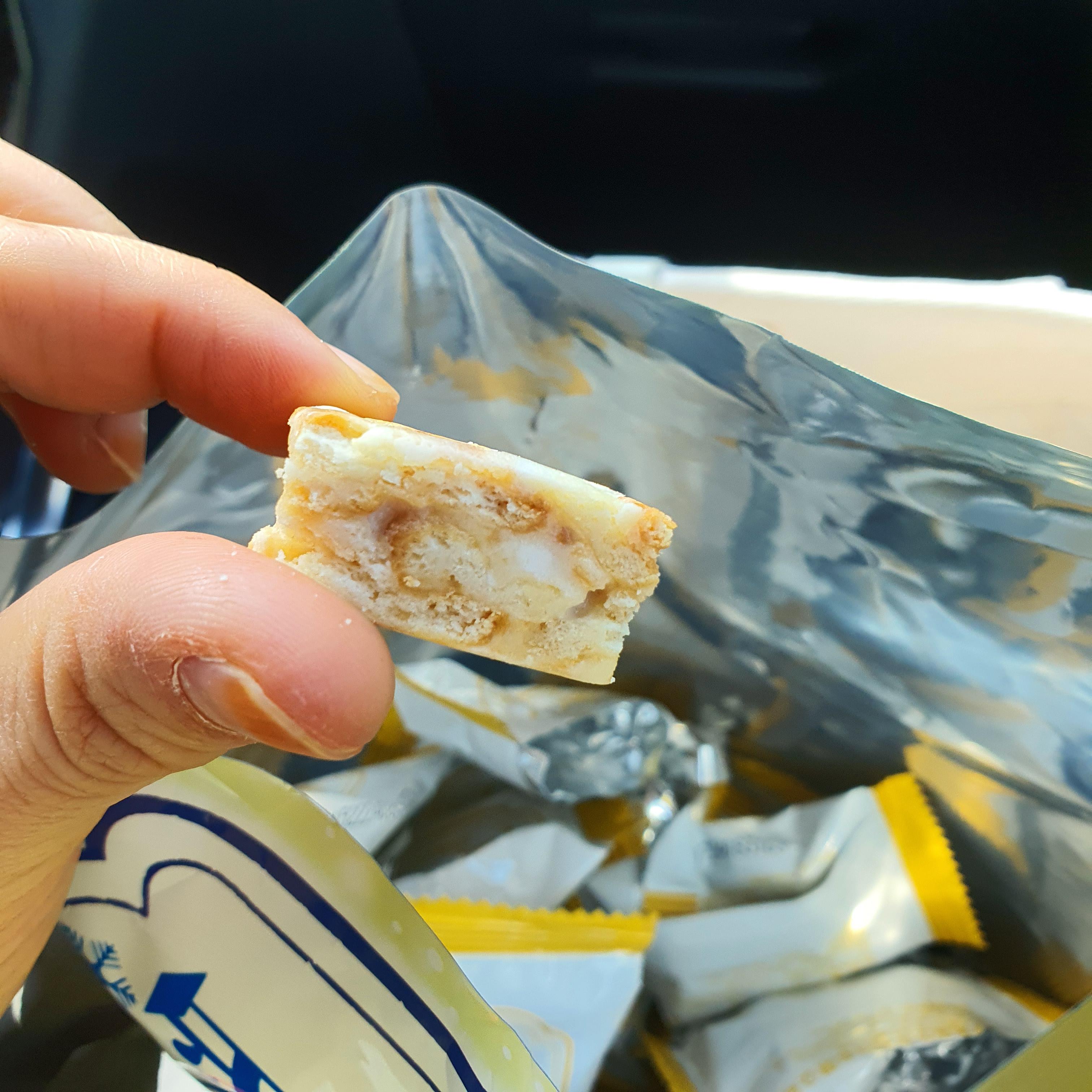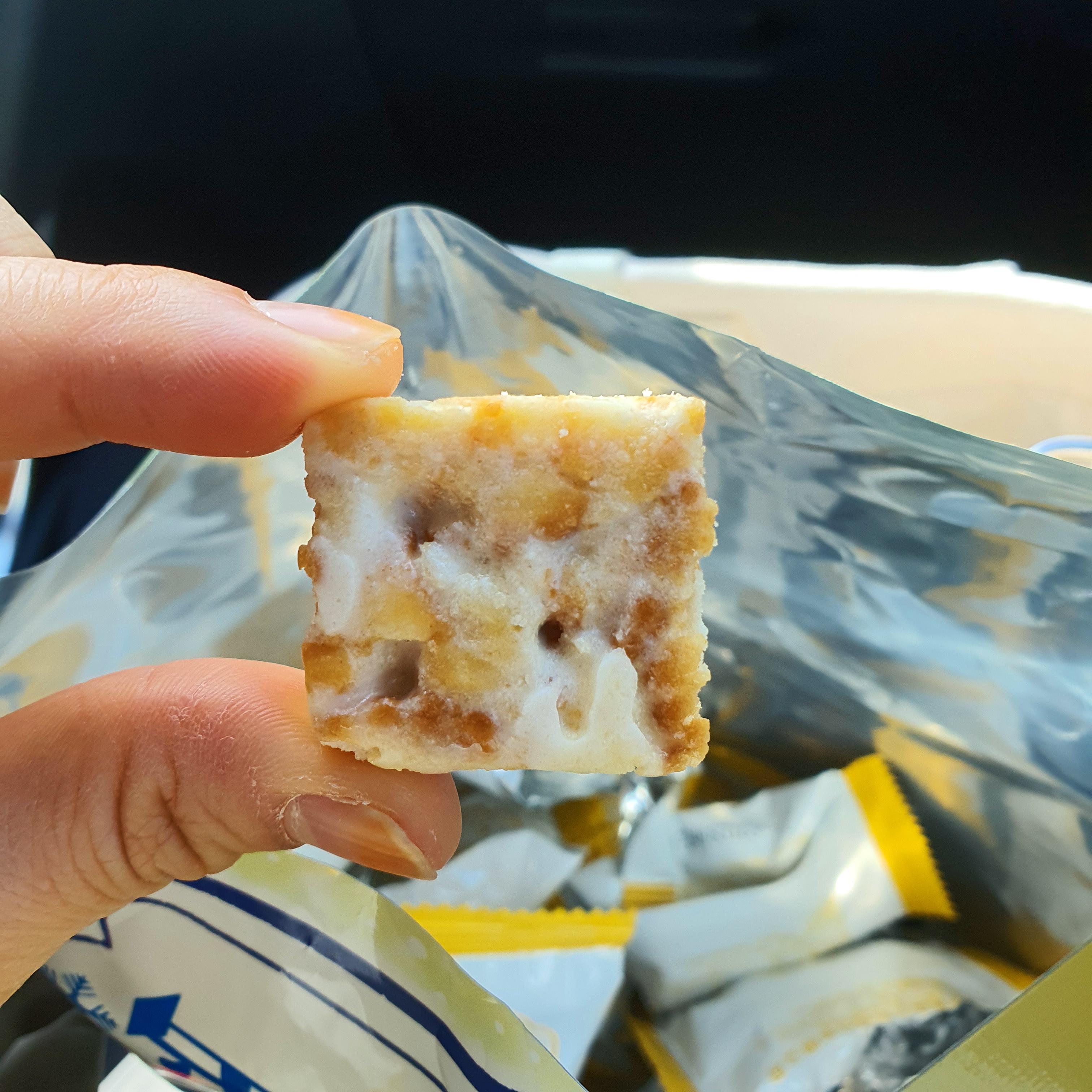 쫀득쫀득 바삭하니 식감이 좋고 맛은 이미 크레커와 누가가 섞여 있으니 두가지가 잘 어우러졌습니다.