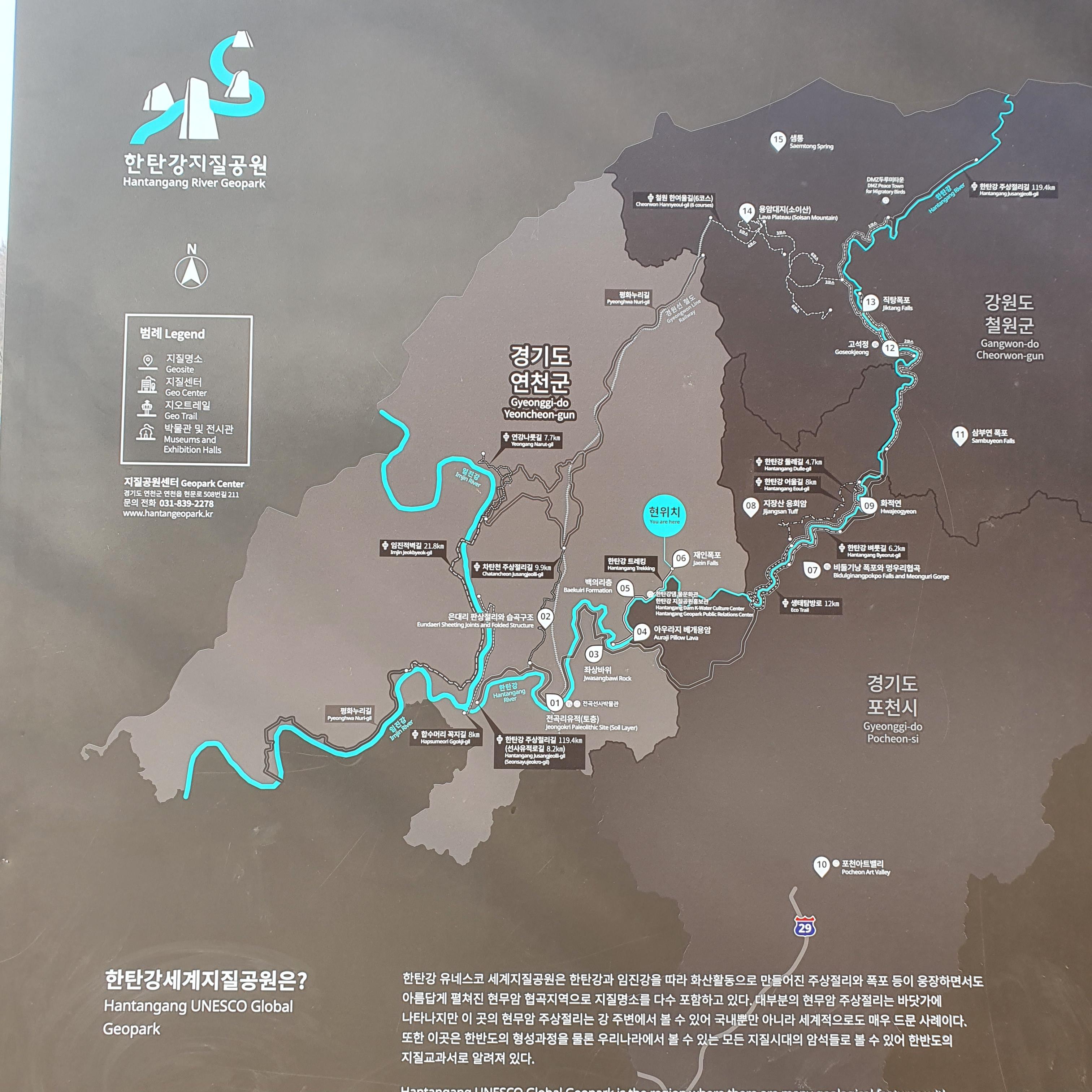 한탄강지질공원 협곡은 철원부터 연천까지 이어져 있습니다.지도상으로는 철원쪽 으로 걸어갈수 있을갓 같지만 실제로는 막혀있습니다.