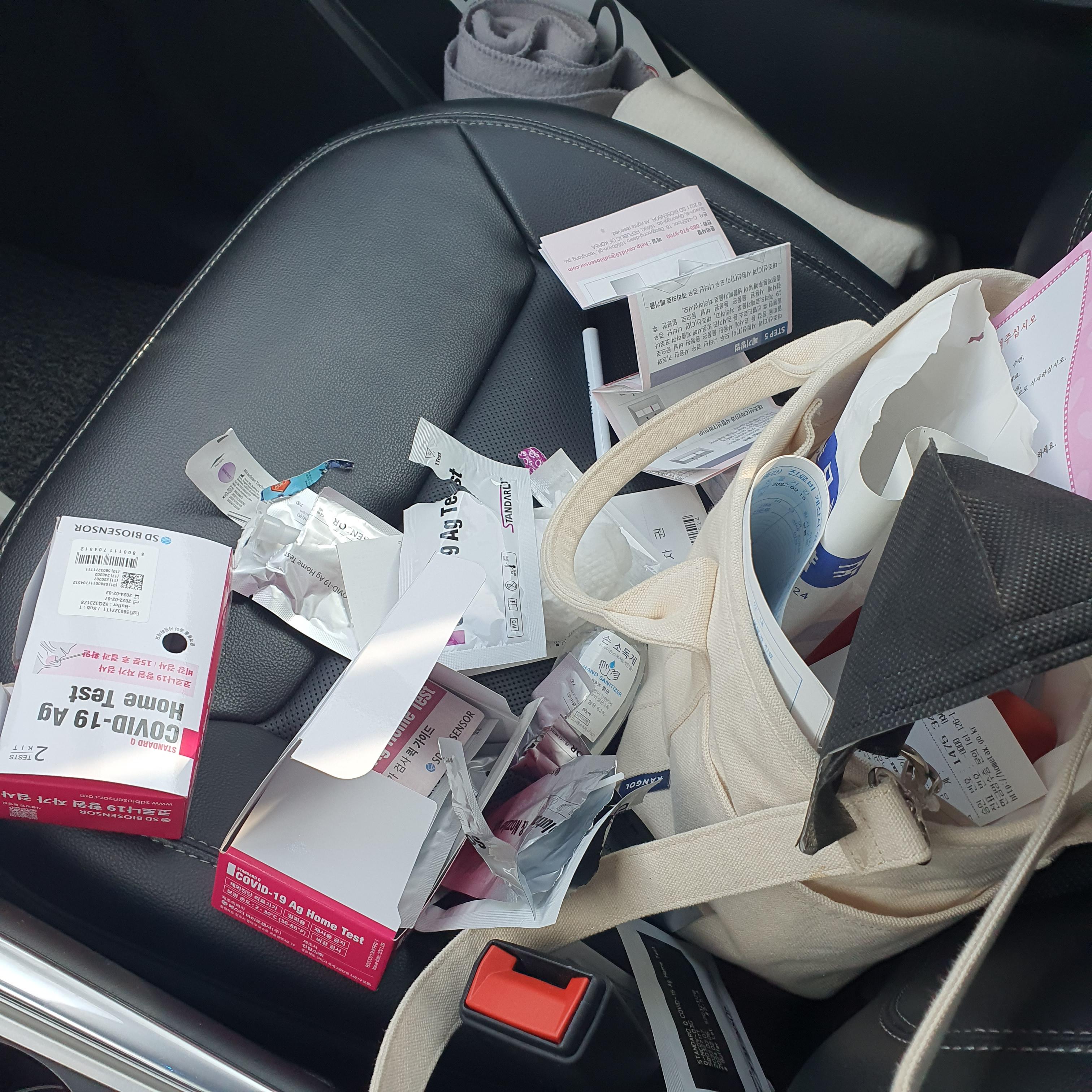 주차는 멀리하고 뛰어가서 키트를 사고 차안에서 아이들 셋의 코를 쑤셔(?) 댔다.
