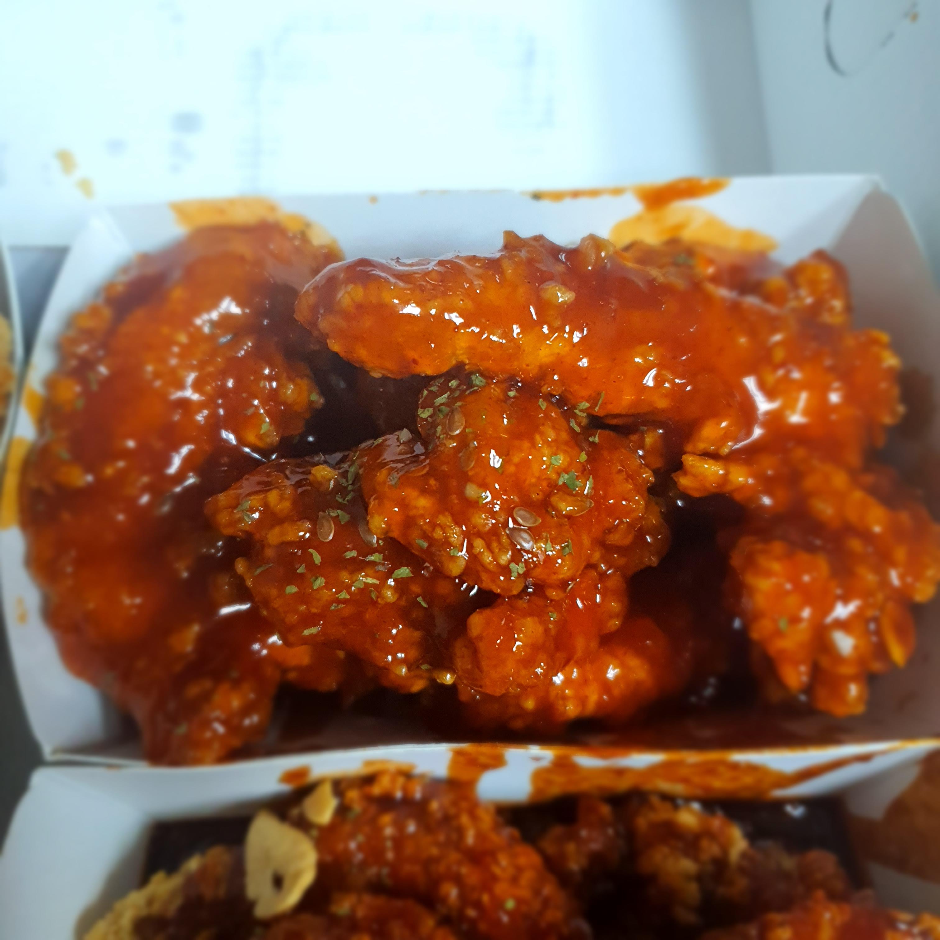 약간 케첩맛이 조금 나는 양념치킨이었습니다. 살짝 매콤 하기도 하구요