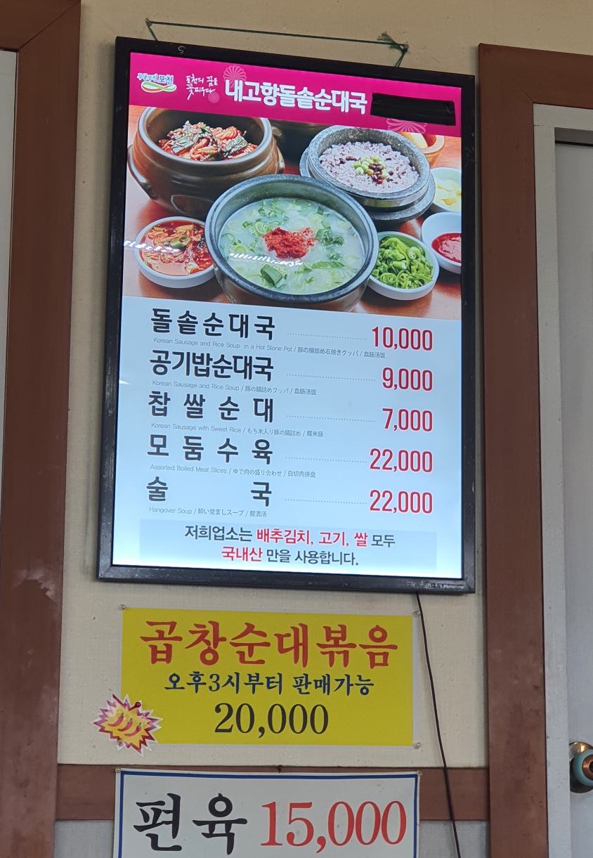 포천 찐, 현지인 맛집 내고향 돌솥 순대국을 먹어보았습니다.